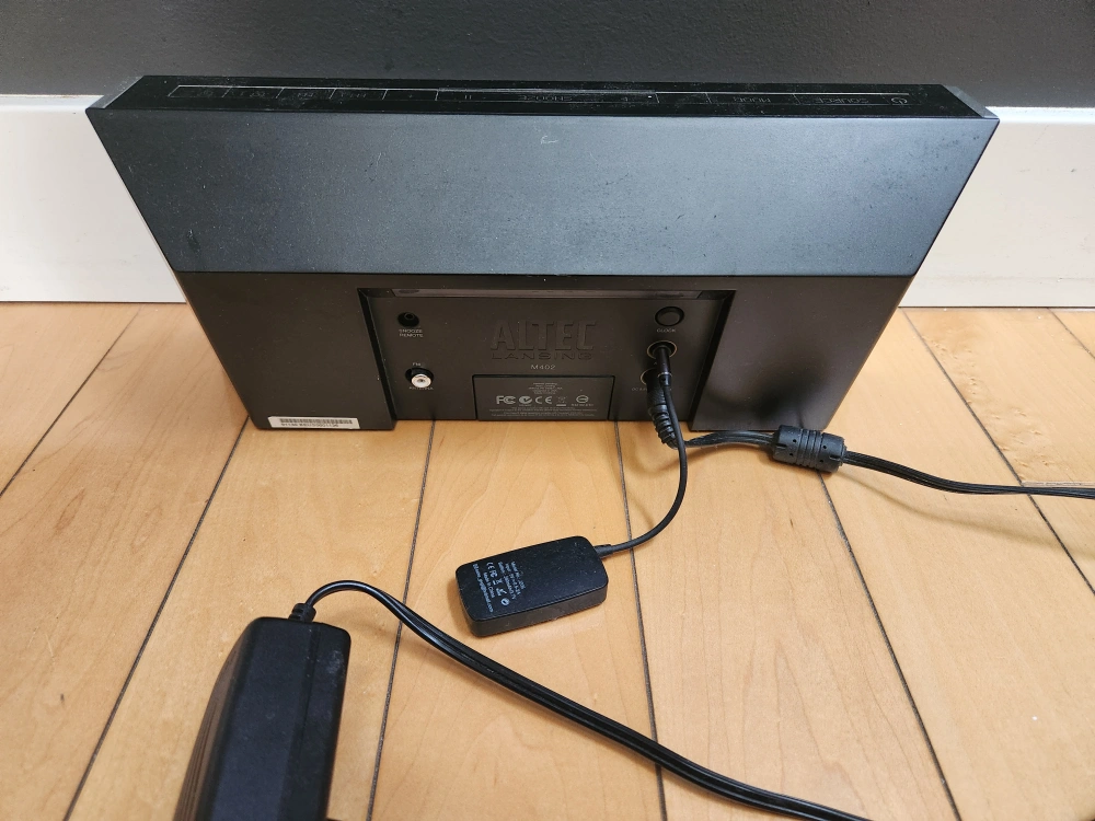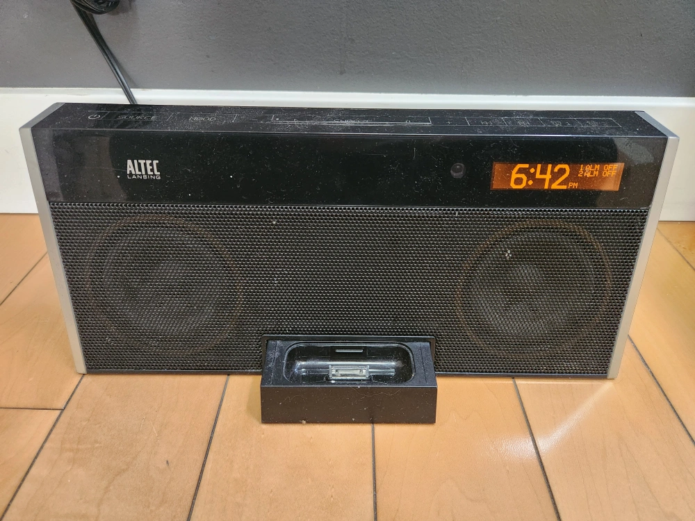 Selling an Altec Lansing M402 speaker in good working condition, no issues. It has a dock for older iPhones and iPods. Comes with the power adapter so you can start listening to your favourite tunes: aux, ipod or FM radio. Comes from a smoke and pet free home.