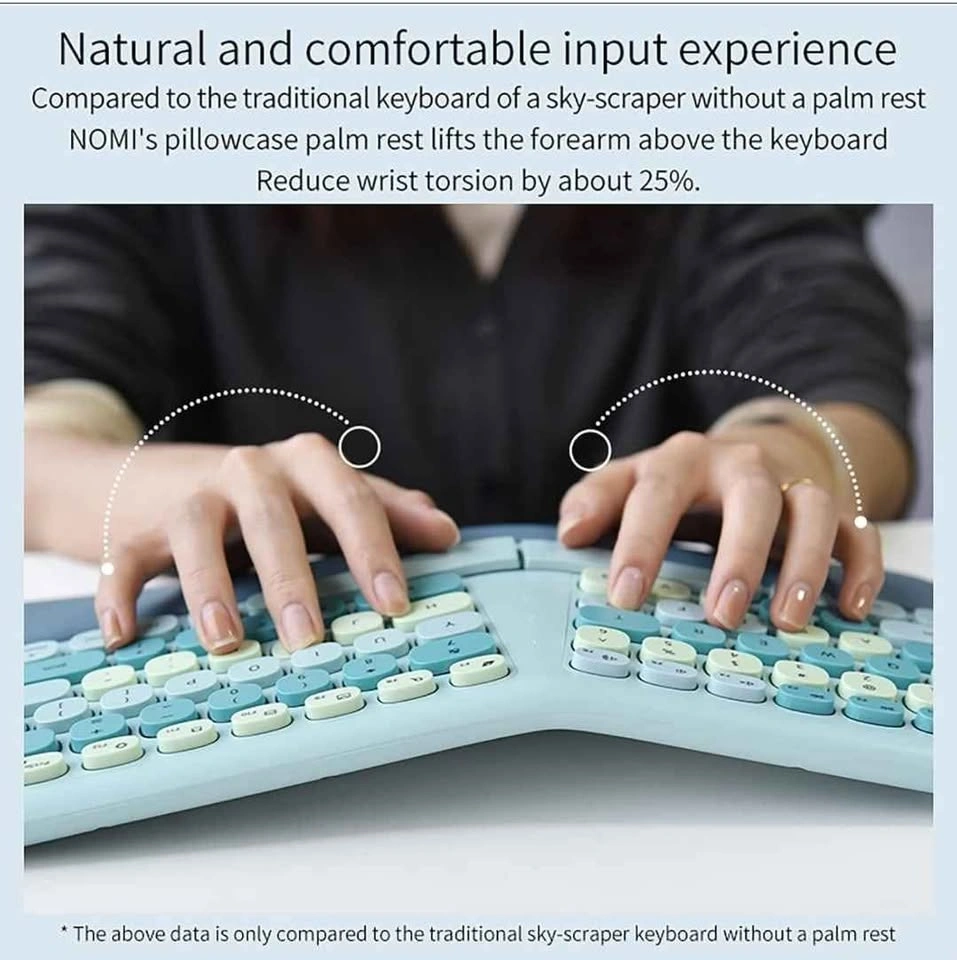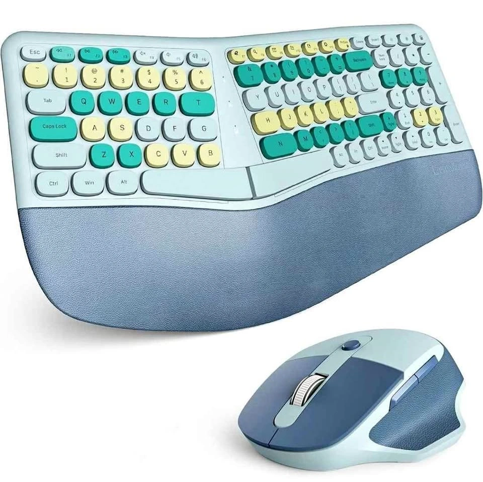 Wireless Ergonomic Keyboard and Mouse Combo, Split Keyboard, Stain-Resistant Comfortable PU Wrist Rest, Natural Typing, 2.4G Connectivity, Compatible with PC/Laptop (Blue)