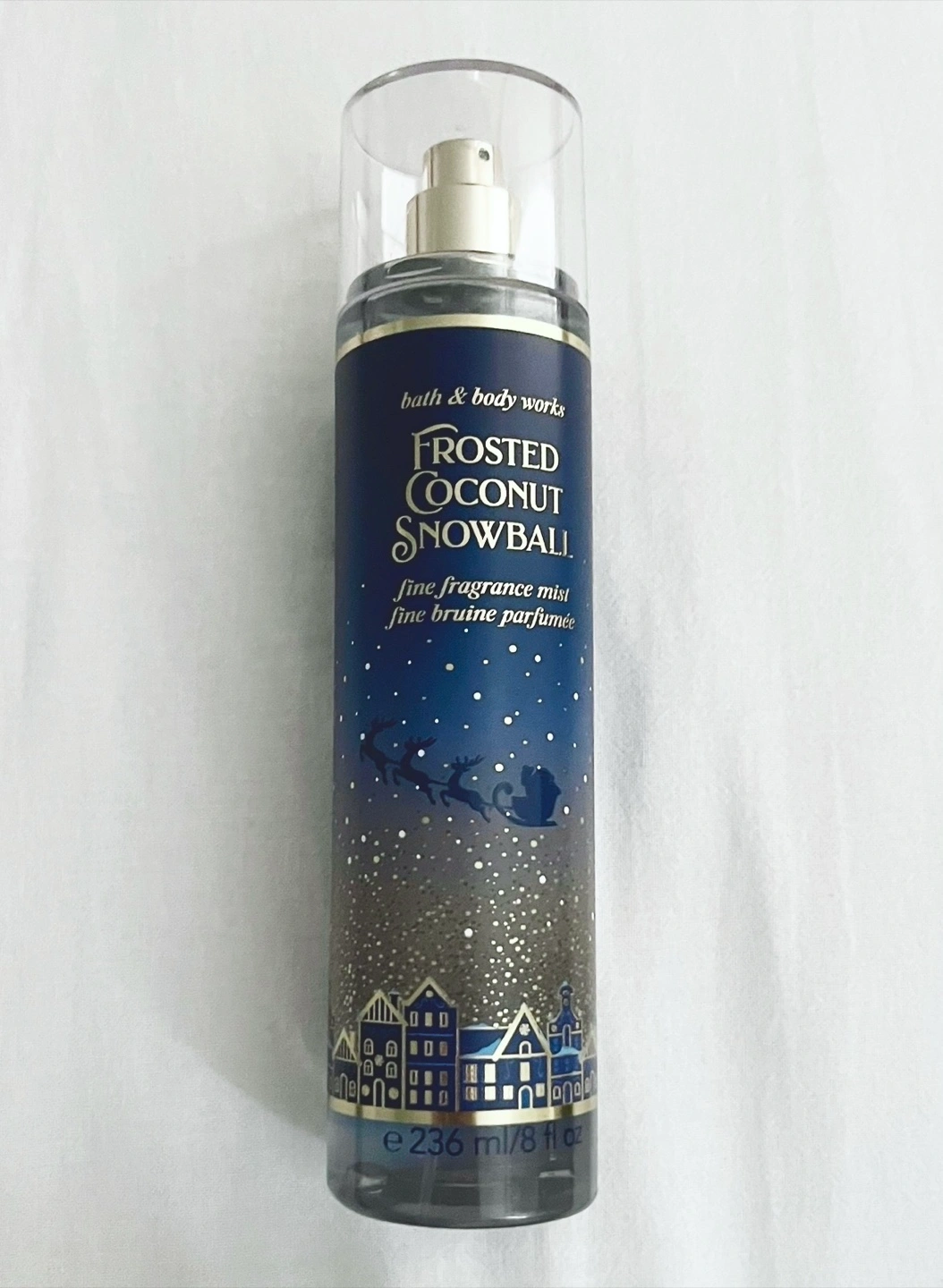 Selling a Bath & Body Works fine fragrance mist in Frosted Coconut Snowball! It's 236 ml/8 fl oz. I sprayed it about 4 times.