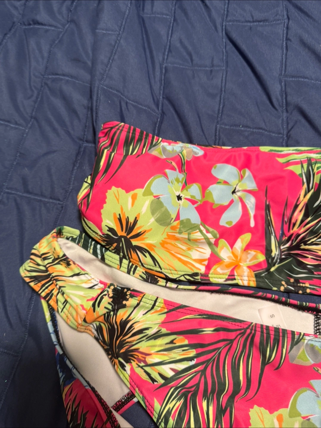 Selling a cute floral swimsuit in size small. It's in great condition and perfect for summer! The bright floral pattern is so fun and vibrant. Never worn