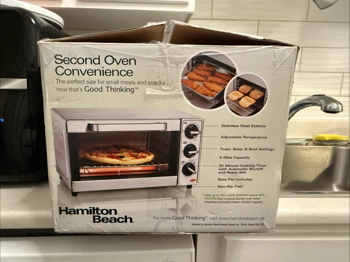 Selling a Hamilton Beach toaster oven model 31401C that's in excellent condition! It fits a 9-inch pizza and has a 4-slice capacity.