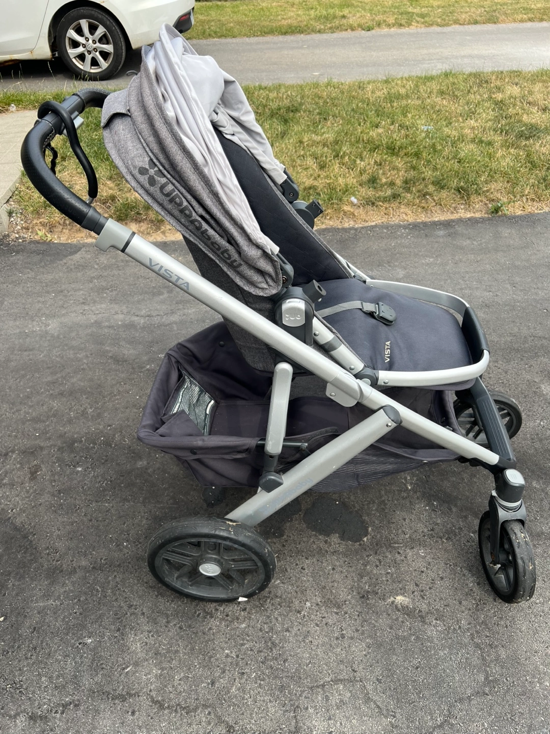 Comes with: -bassinet & toddler seat -storage bag -bug net for bassinet and toddler seat -snack tray -manual -piggyback scooter board -hook for bags -skip hop stroller organizer/storage Bassinet is practically brand new, barely used. Stroller has some marks/scratches as shown, but everything is in great working condition.