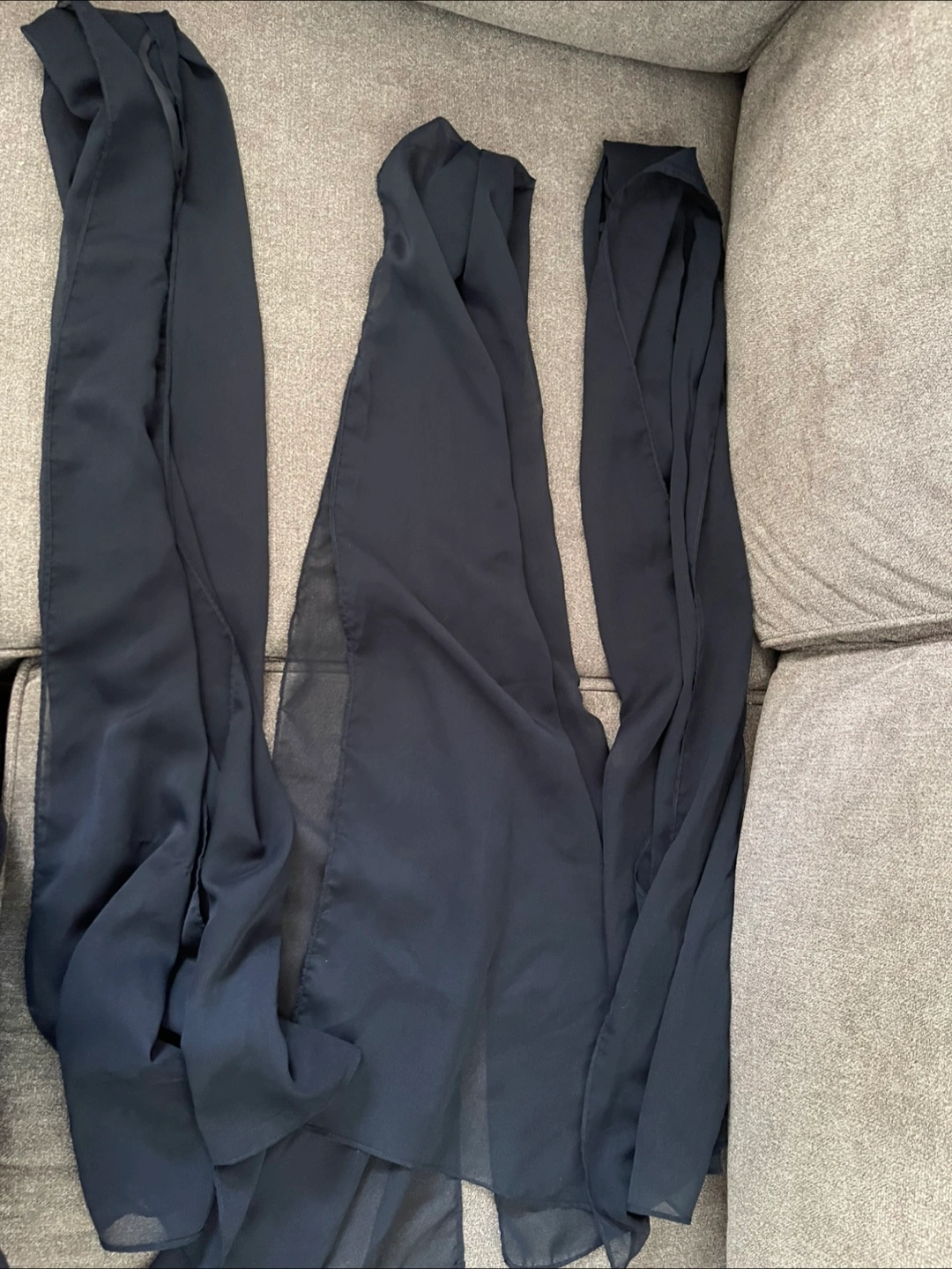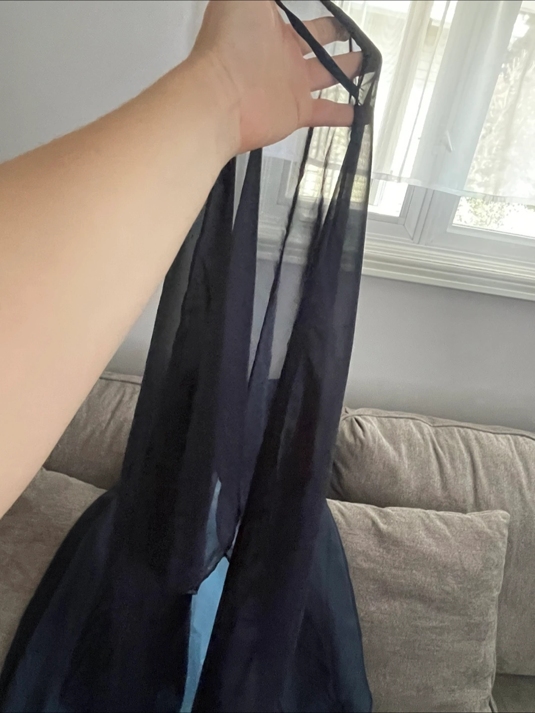 Selling a navy blue chiffon dress overlay. It's lightweight and adds a touch of elegance to any dress. Perfect for layering! 5 pc., all together