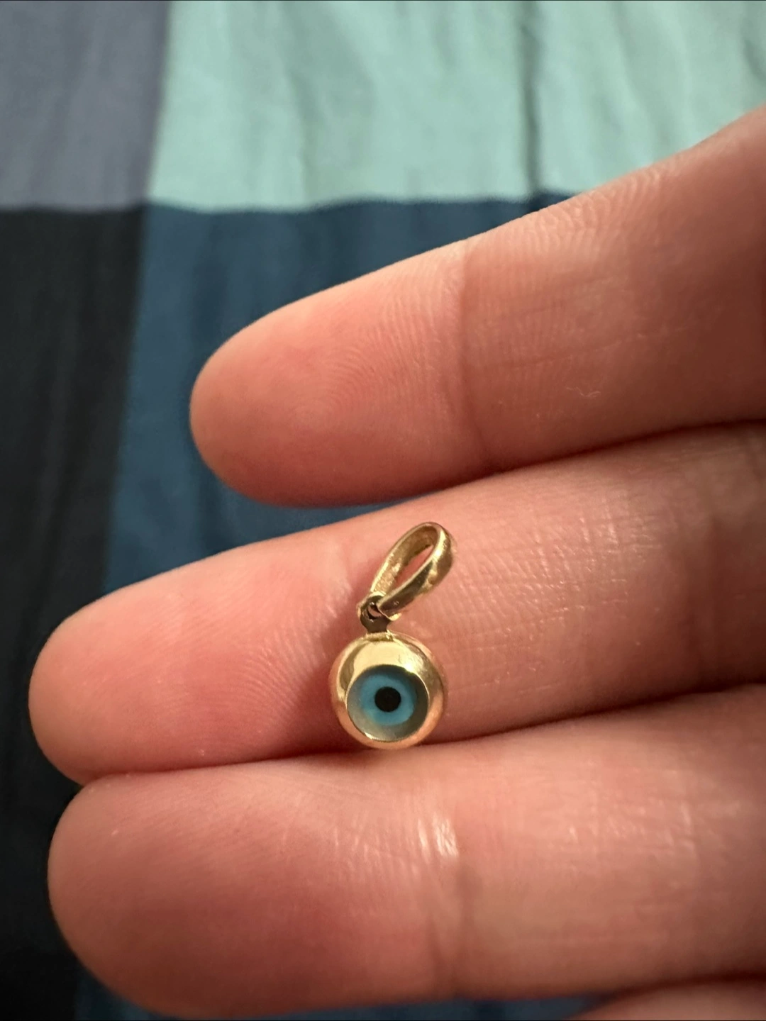 Selling a lovely gold evil eye pendant! It's in great condition and ready to bring some good vibes your way. Perfect for adding a touch of charm to any necklace or bracelet