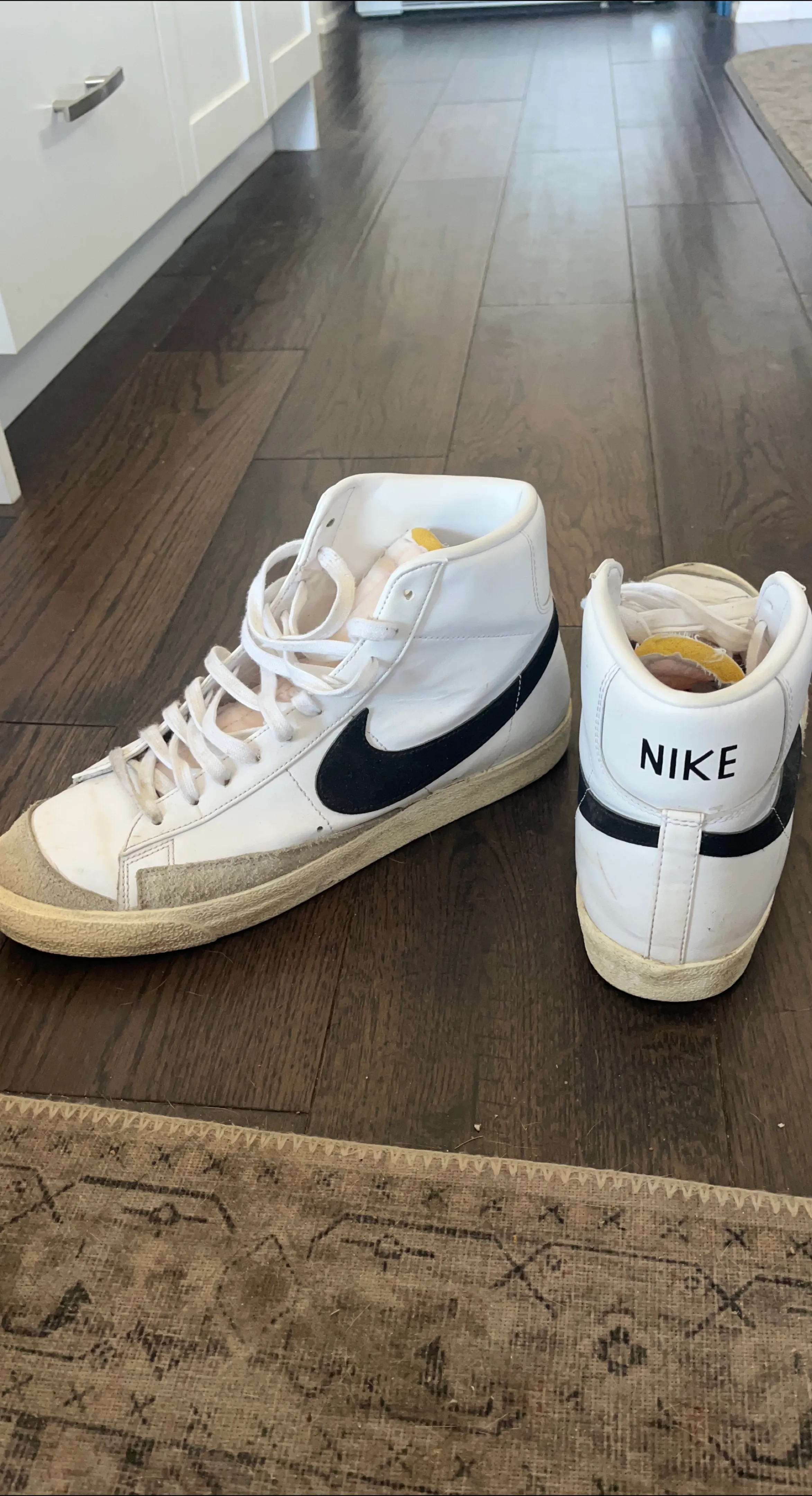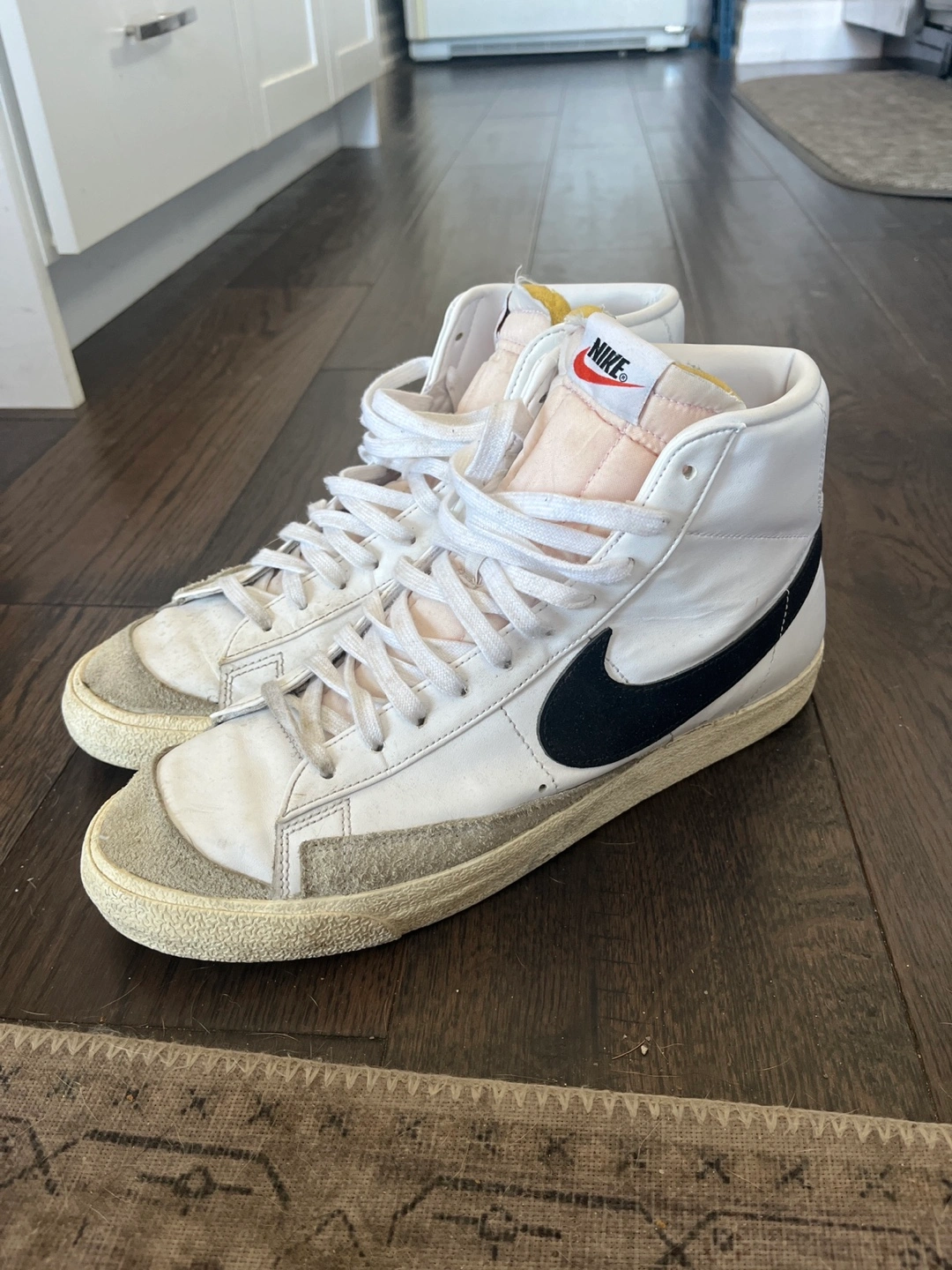 Selling a pair of Nike Blazer Mid '77 sneakers in white and black! Great for everyday wear or hitting the court