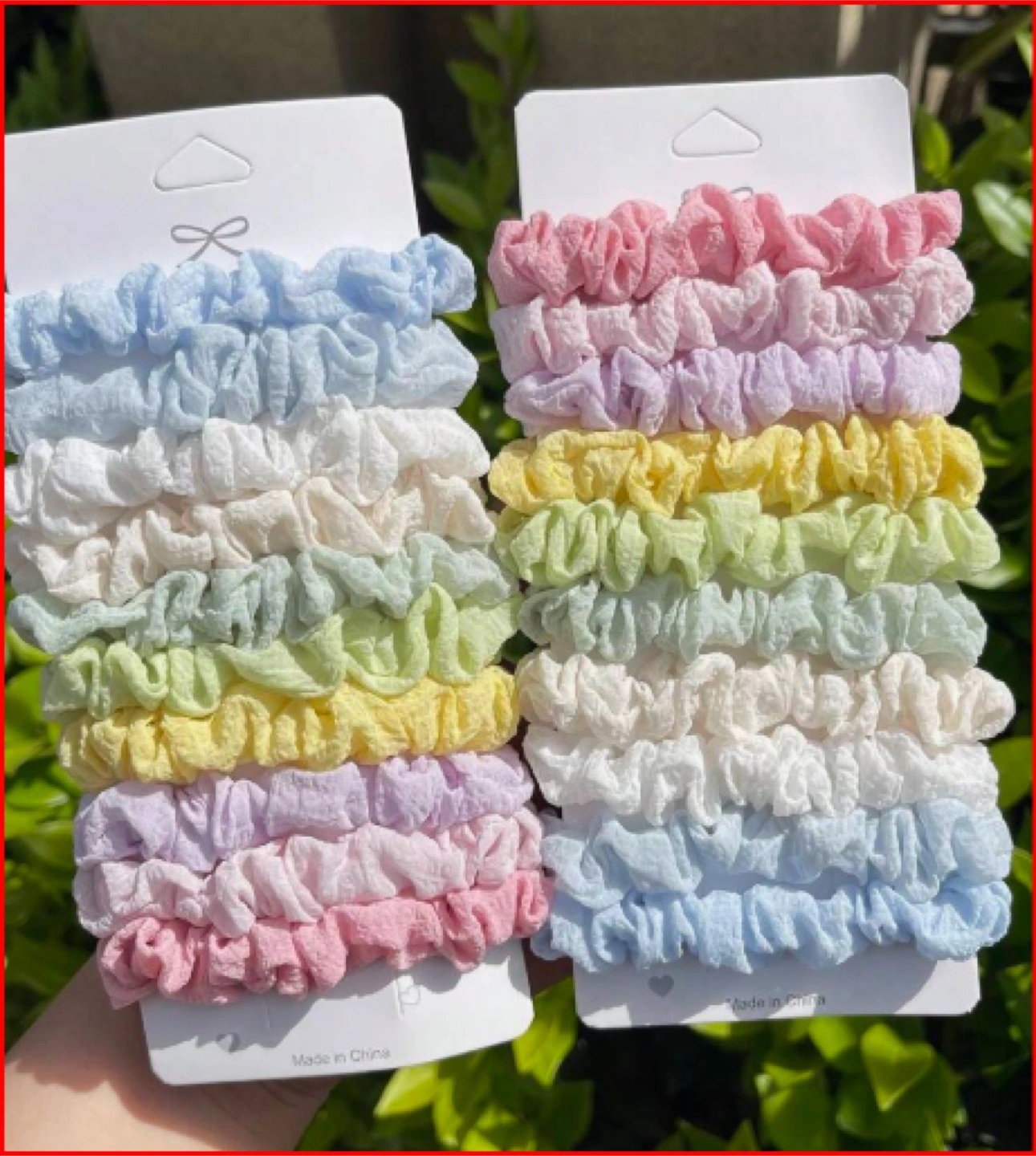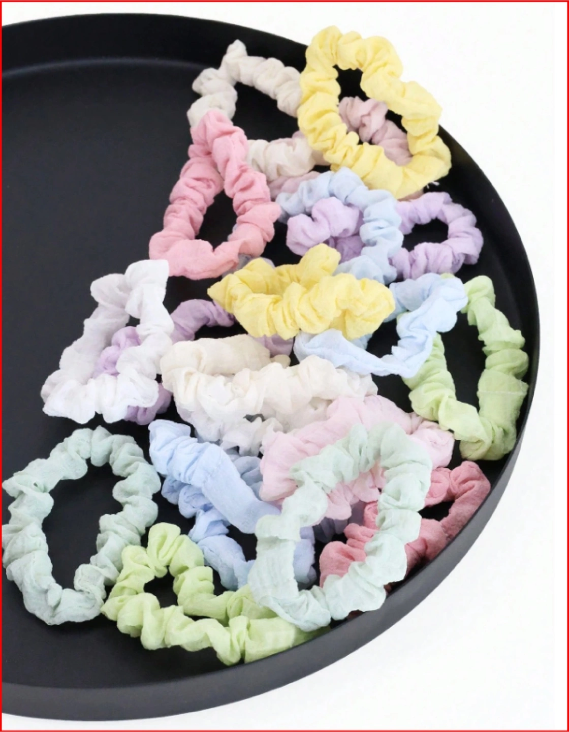 Brand new pastel hair scrunchies! These cute scrunchies come in a variety of soft pastel colours, perfect for adding a touch of sweetness to any hairstyle