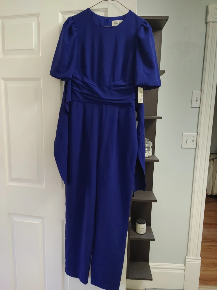 This is a brand new Eliza J jumpsuit in a beautiful blue colour, from Nordstrom! It's a size 4 and features a stylish design. The tag shows it originally retailed for $205.00