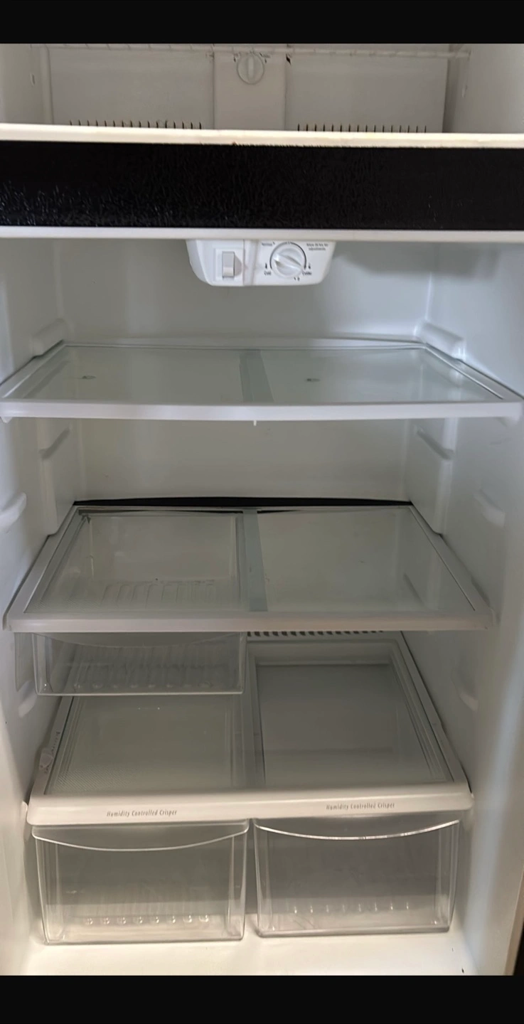 Selling a Frigidaire top freezer refrigerator. It's in good condition and ready for a new home! It features adjustable shelves and humidity-controlled crispers to keep your food fresh