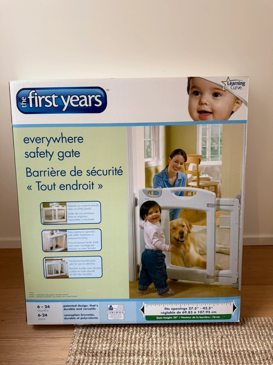 Selling The First Years Everywhere Safety Gate, perfect for keeping your little ones safe! It's designed for kids aged 6-24 months.
