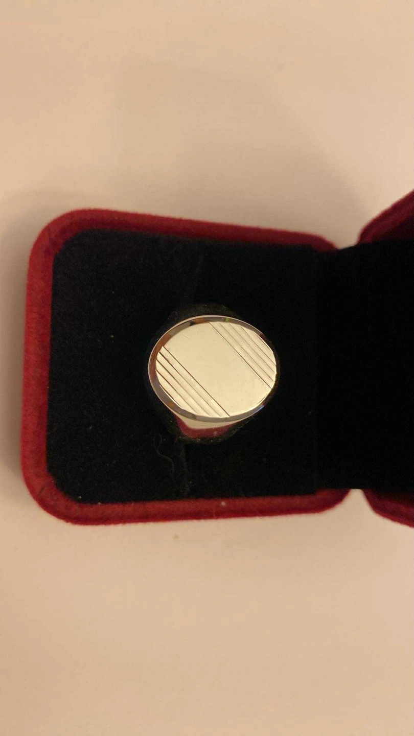 Selling a silver ring that comes with its original box. Silver ring weight 6.8 grams, size 10