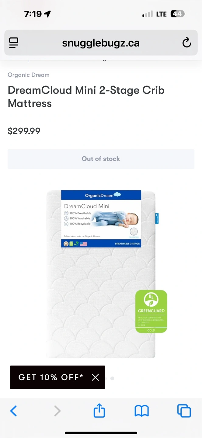 Selling an Organic Dream DreamCloud Mini 2-Stage Crib Mattress.
