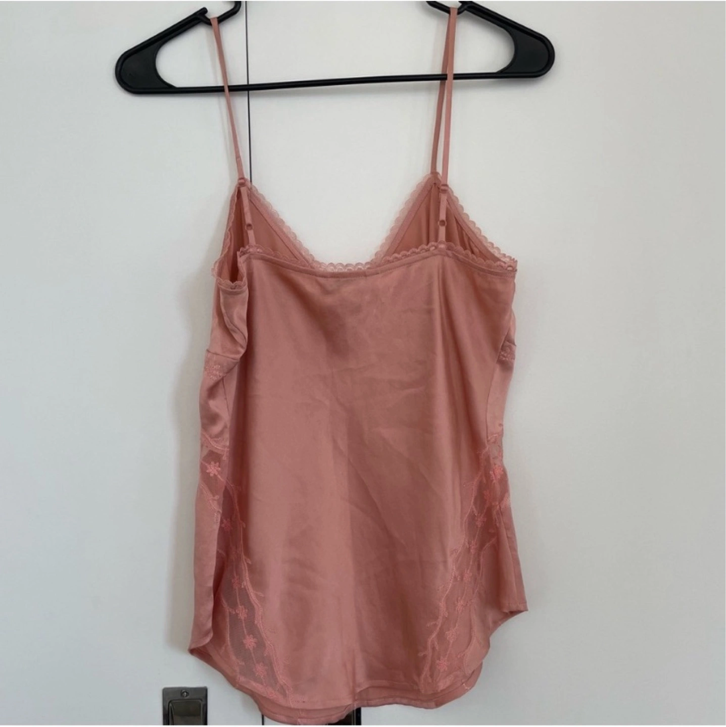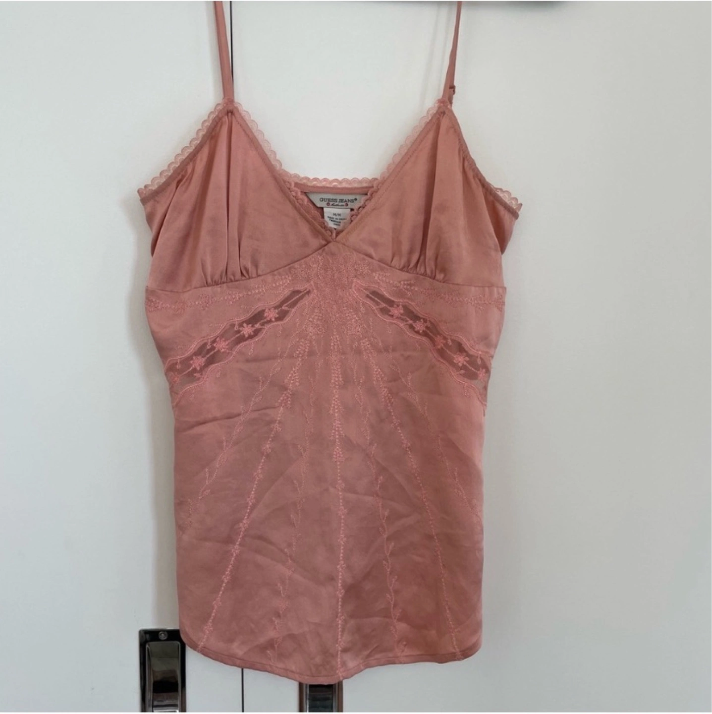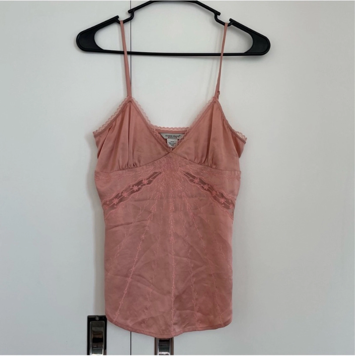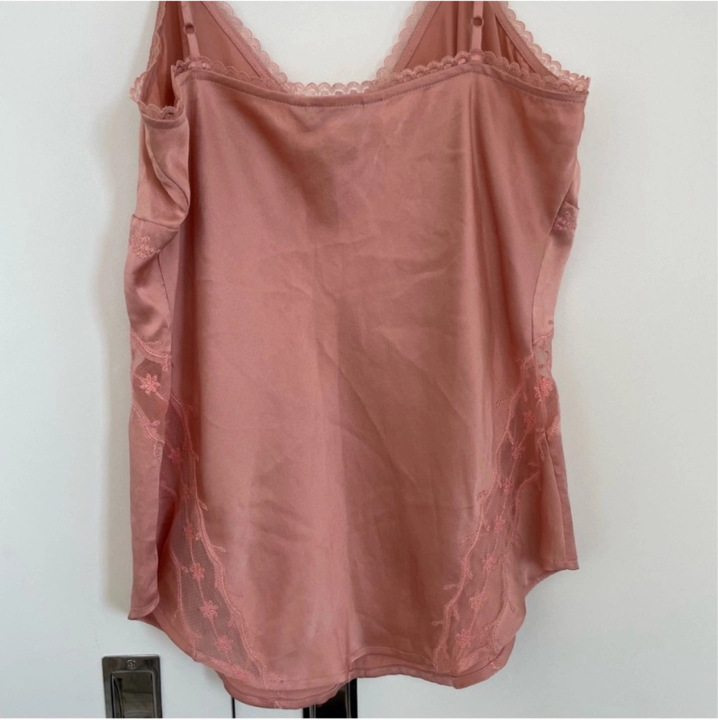 Salmon/pink colour with lace cutouts and embroidered derailing