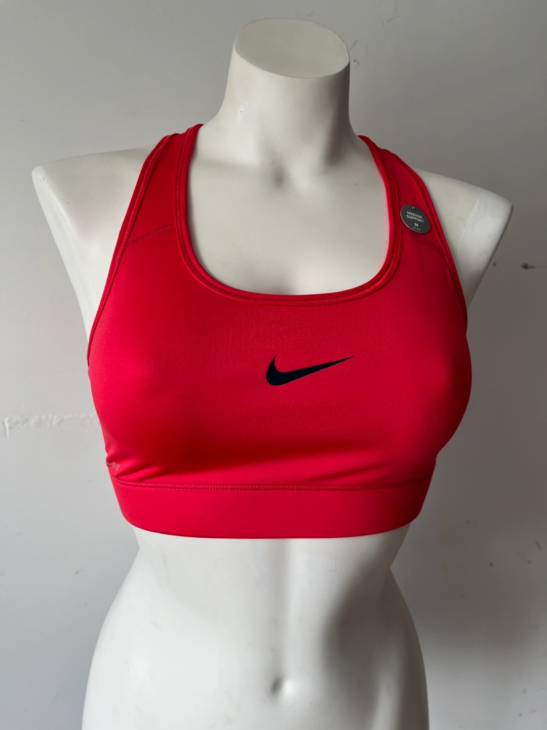Selling a brand new with tags, Nike Pro sports bra in a vibrant red colour. It's a size medium and offers medium support. Features Nike's Dri-FIT technology to keep you cool and comfortable during workouts. Perfect for all kinds of activities!