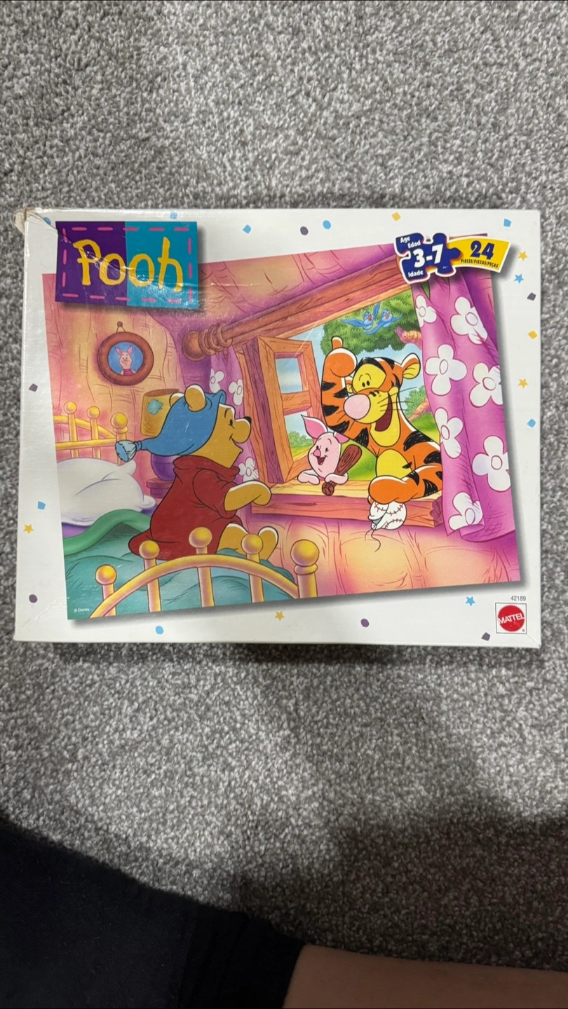 Selling a Winnie the Pooh 24-piece puzzle! It's recommended for ages 3-7. The box is included, and the puzzle pieces are in good condition for hours of fun