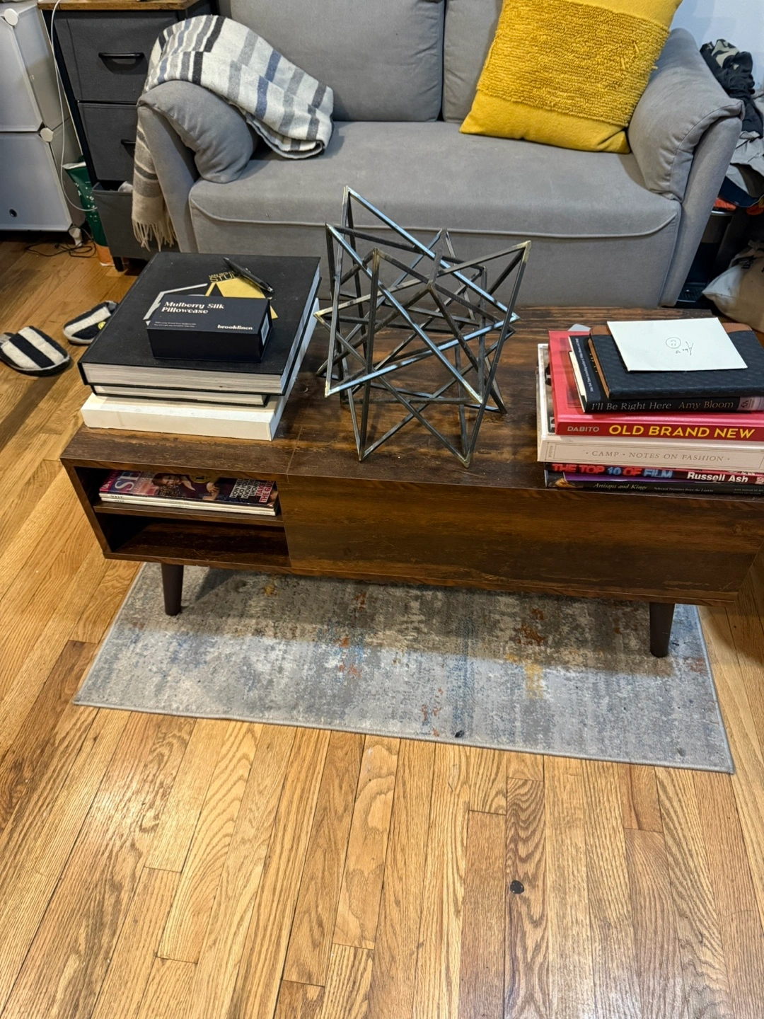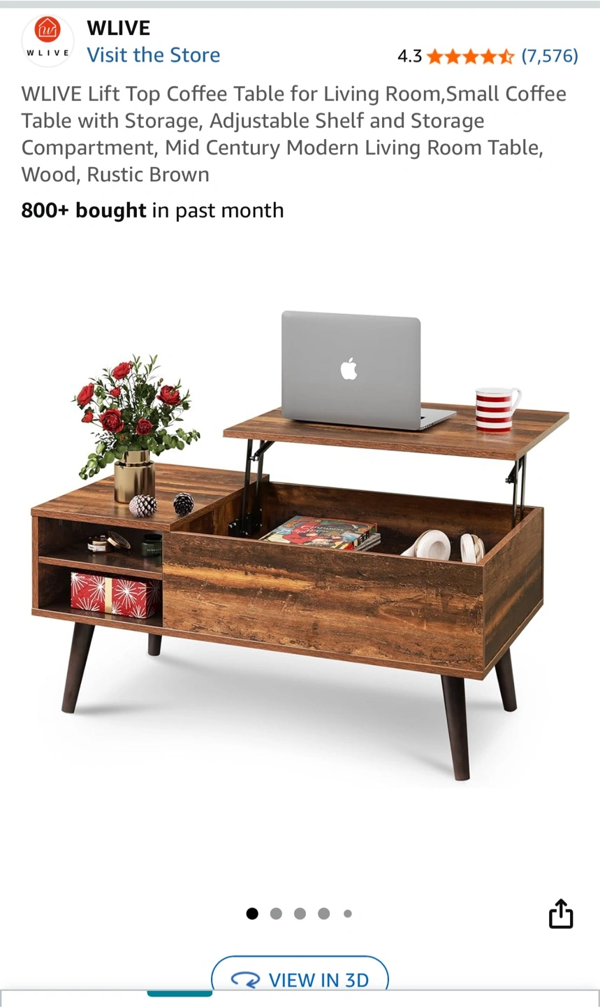 Selling a WLIVE lift top coffee table in rustic brown! This table is perfect for living rooms, offering storage and an adjustable shelf. It features a mid-century modern design with a compartment for extra storage. It's a stylish and functional addition to any home!