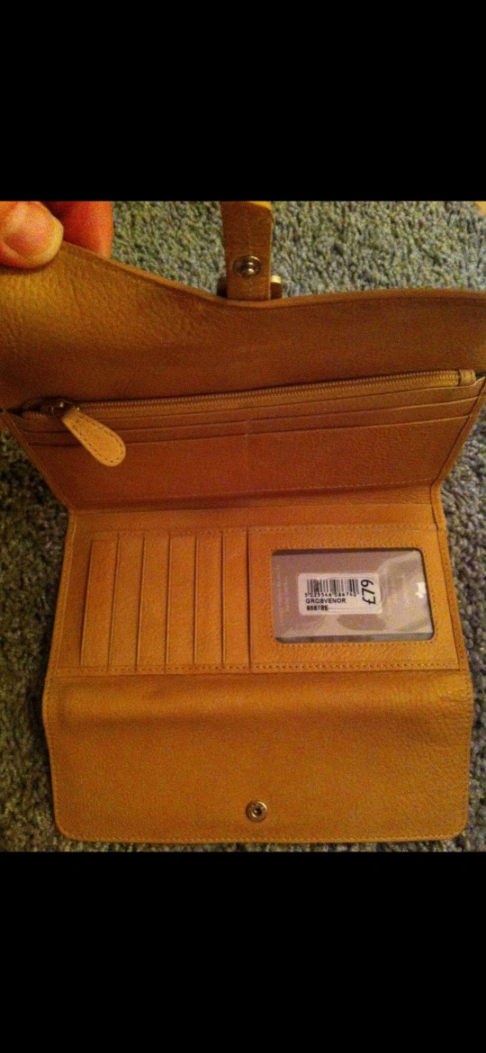 Selling a brand new Radley London Grosvenor large matinee wallet color is tan. H10 x W19 x D3cm. Made from luxury textured leather and a buckle detail on the front. The popper button opens to reveal room for 10 cards, a clear window for ID and a zipped compartment ideal for loose change. This was purchased in the UK and is a very popular brand over there.