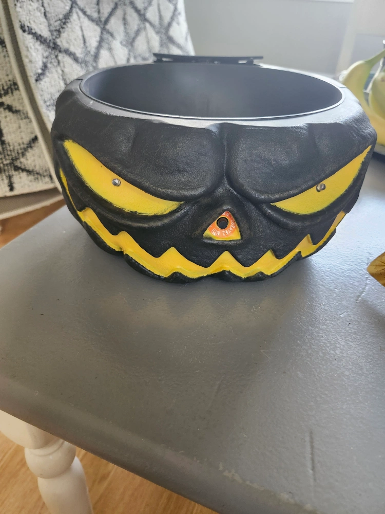 Get ready for Halloween with this spooky candy bowl! It features a scary face design with glowing light up eyes.Perfect for holding treats for trick-or-treaters!