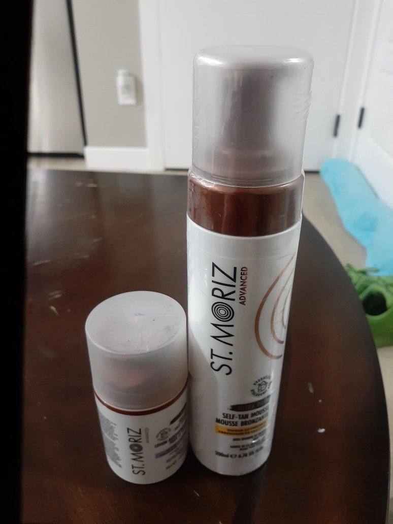 103I'm selling a St. Moriz Advanced self-tan set! It includes: - Ultra Dark Self-Tan Mousse (200ml/6.76 US fl.oz) - Dark Self-Tan Face Lotion (50ml/1.69 US fl.oz) Both are colour correcting and add warmth to darker skin tones. Perfect for achieving a sun-kissed glow without the sun! full set for only $30