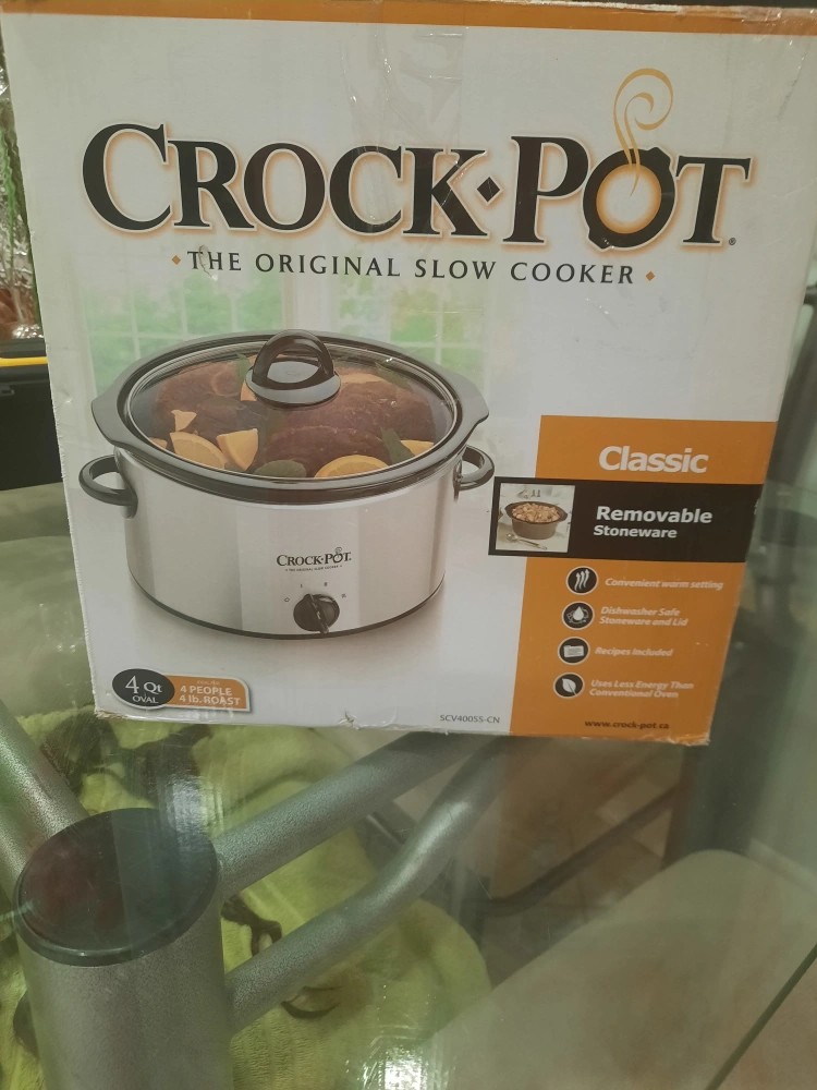 I'm selling a Crock-Pot slow cooker in great condition! It's a Classic model with a 4-quart capacity, perfect for cooking meals for up to 4 people. The removable stoneware is dishwasher safe, making cleanup a breeze. It also features a convenient warm setting and includes recipes. Box is included!