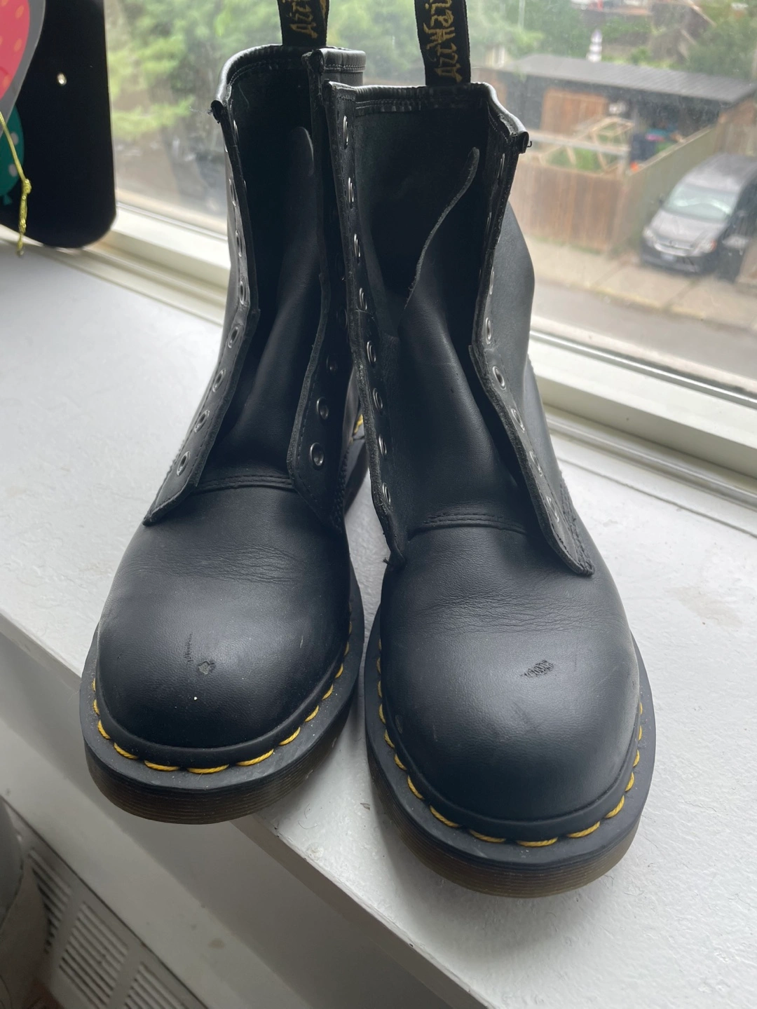women’s size 8 (us) doc martens, some scuffle on the front, but overall gently worn.