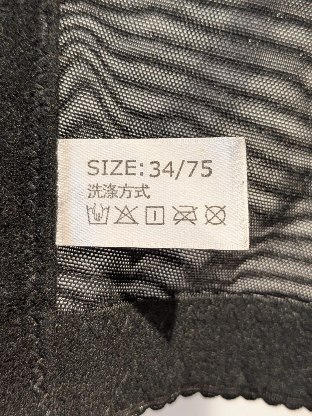 Band measurement laid flat 11" to 12 1/2" across, on label a 34/75 cm band