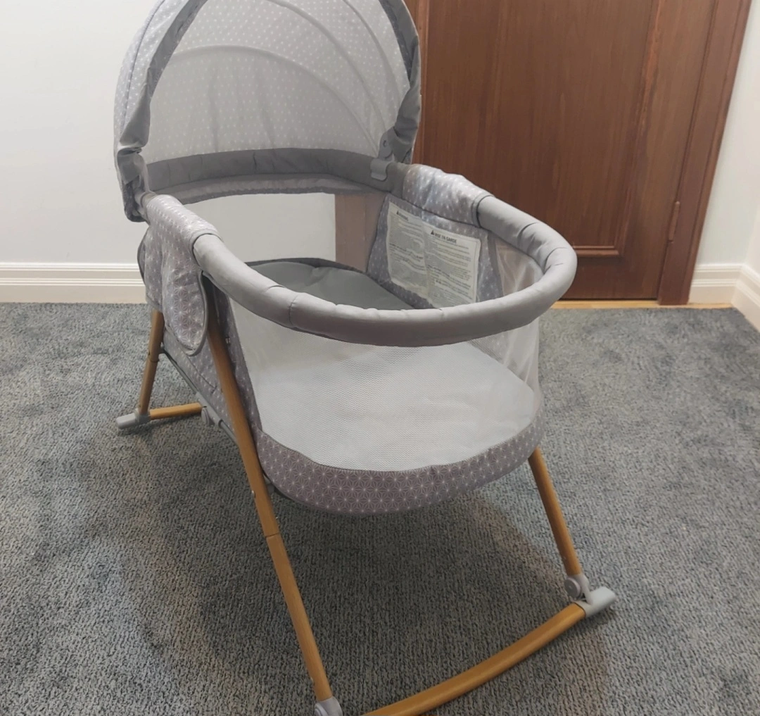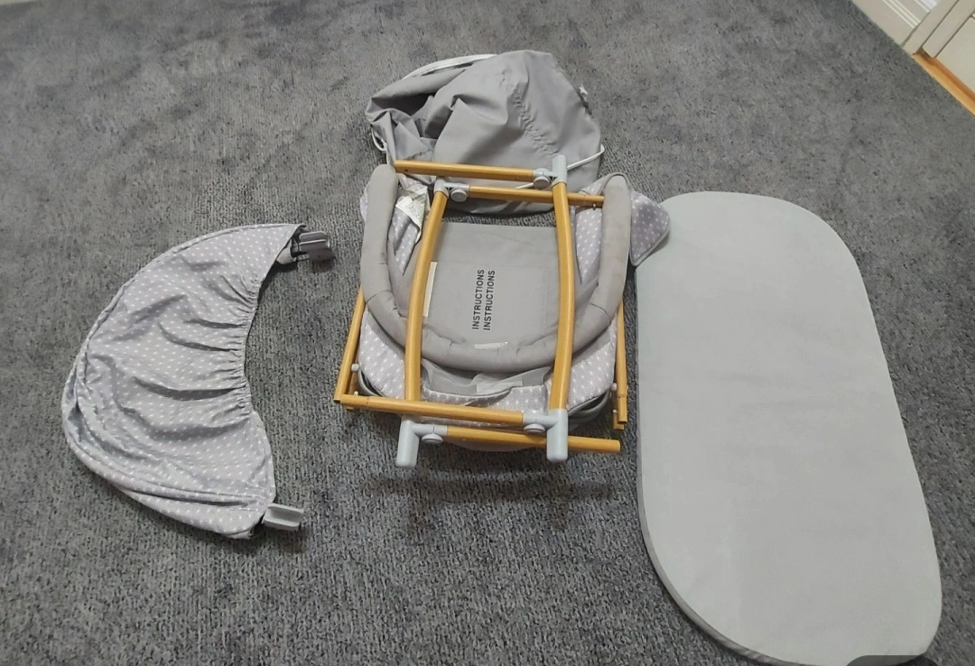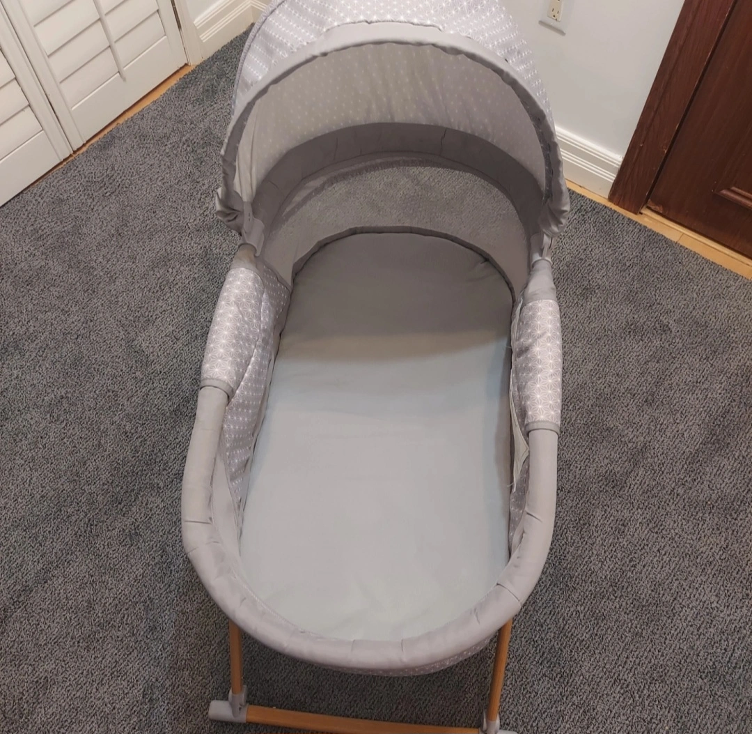 Selling a Safety 1st baby bassinet in excellent condition! It comes with a convenient carry bag for easy transport and storage. The bassinet is grey and features a canopy and mesh sides for breathability. Perfect for newborns and infants!