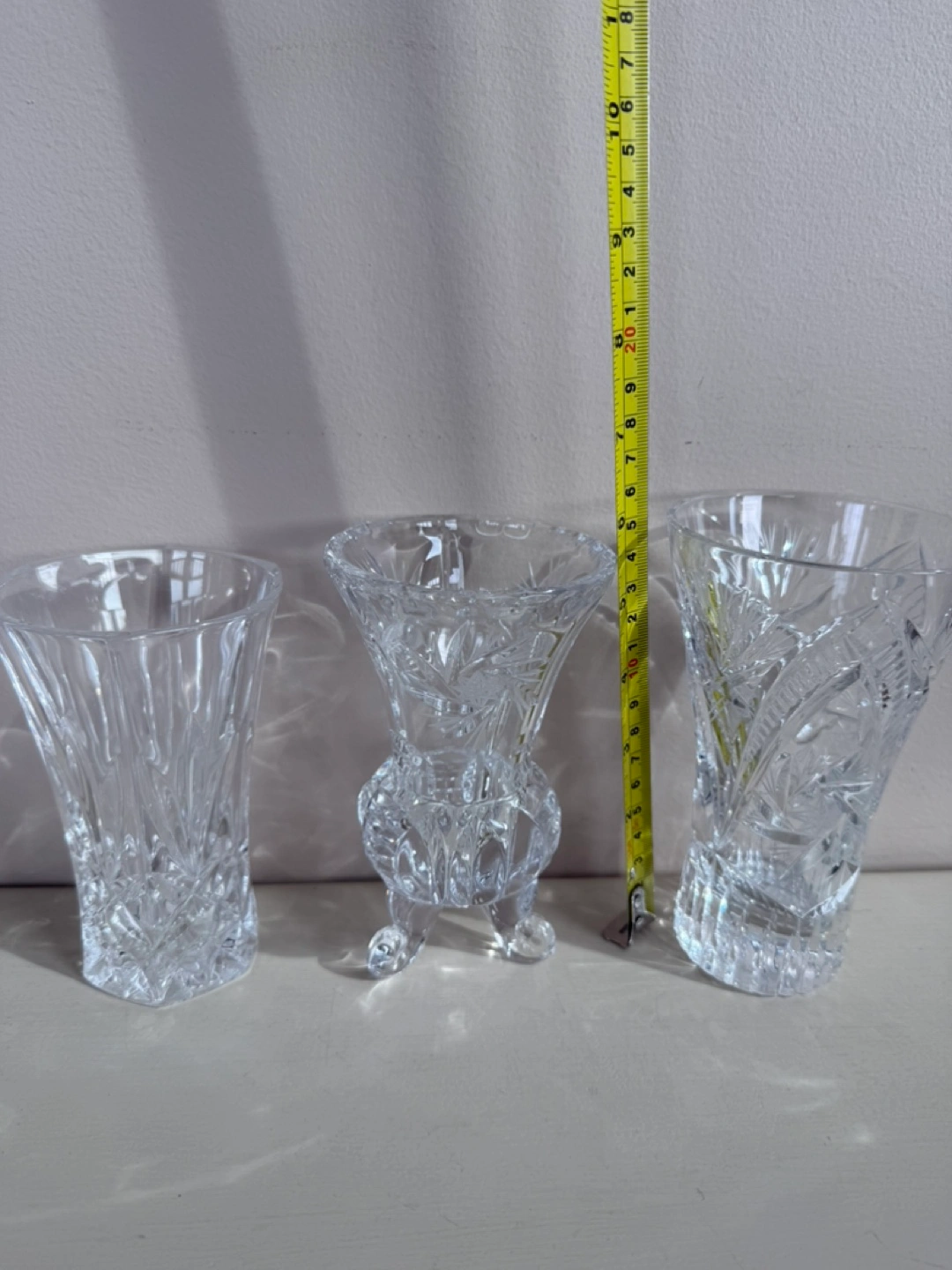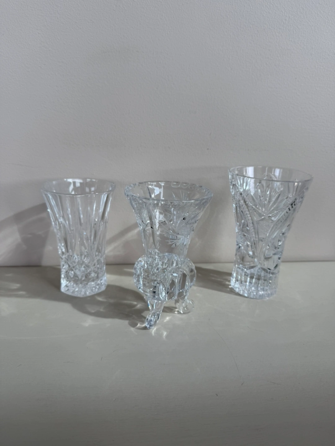 75Selling a set of three crystal vases. They have a beautiful, intricate design. Perfect for displaying flowers or as decorative pieces around the house! Please see photos for size. Condition is excellent. Cash and pick up only in W. Hillhurst NW. Thanks for looking!