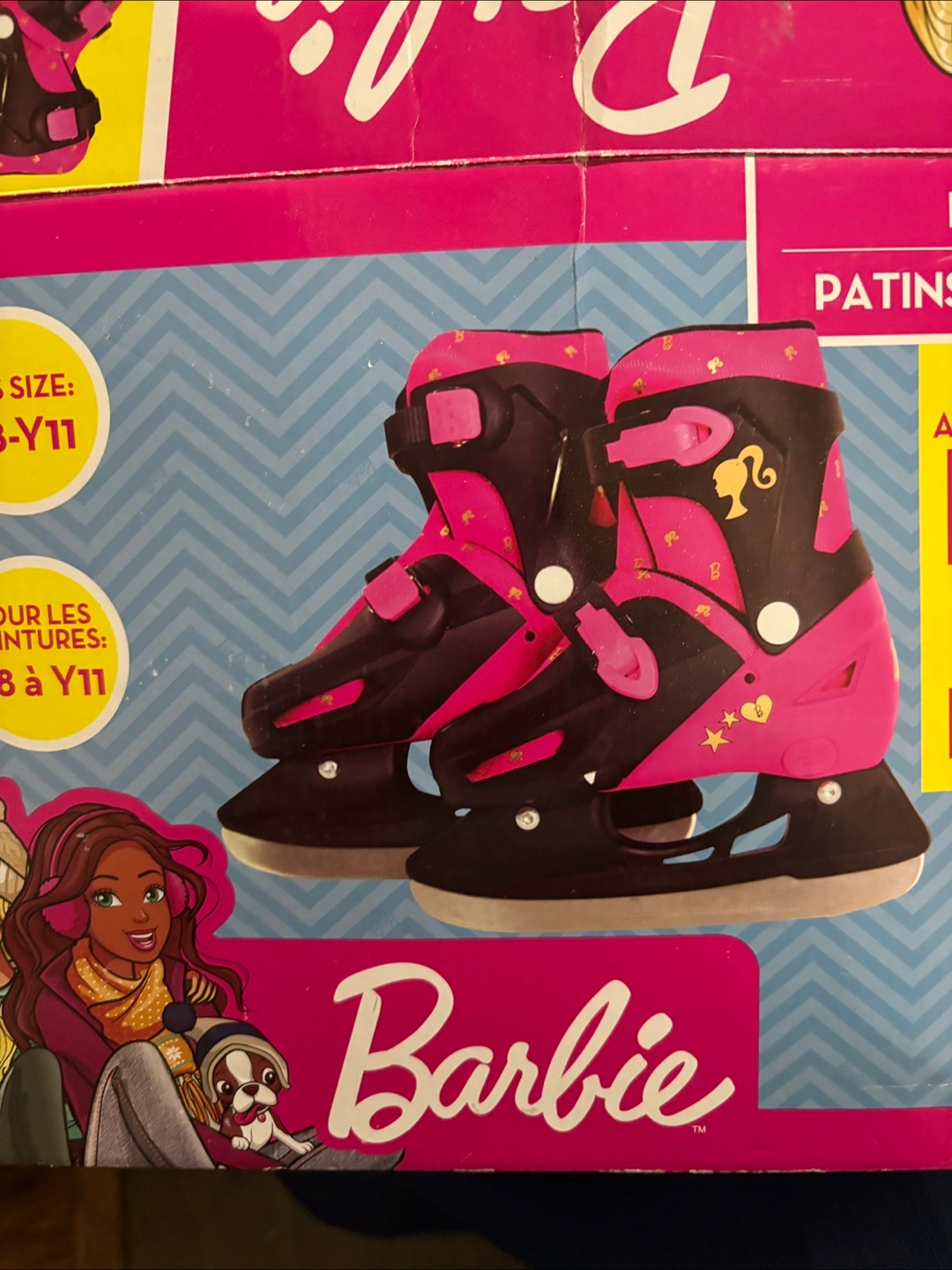 Selling a pair of Barbie skates in brand new condition! The size is adjustable from Y8 to Y11. Perfect for your little one who loves Barbie and skating. Comes with the original box. Never been worn. Zip tie still around the skate bottom