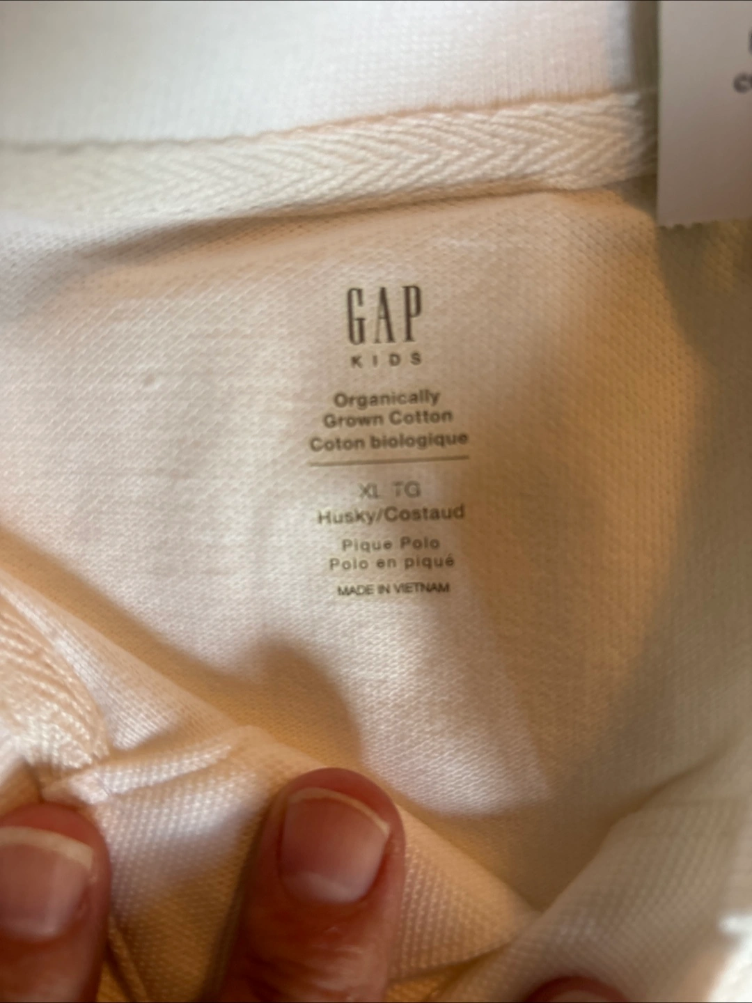 I'm selling a brand new Gap Kids polo shirt! It's white and size XL Husky. The shirt is made from organically grown cotton. Perfect for back to school!