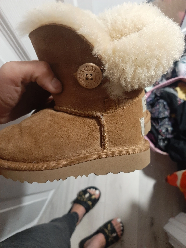 Selling a pair of UGG Kids' Classic Short Boots in size 7! They're in great condition and ready for a new home. These cozy boots are perfect for keeping little feet warm and stylish during the colder months. They are a great colour and will match anything! Make an offer, also open to trade.