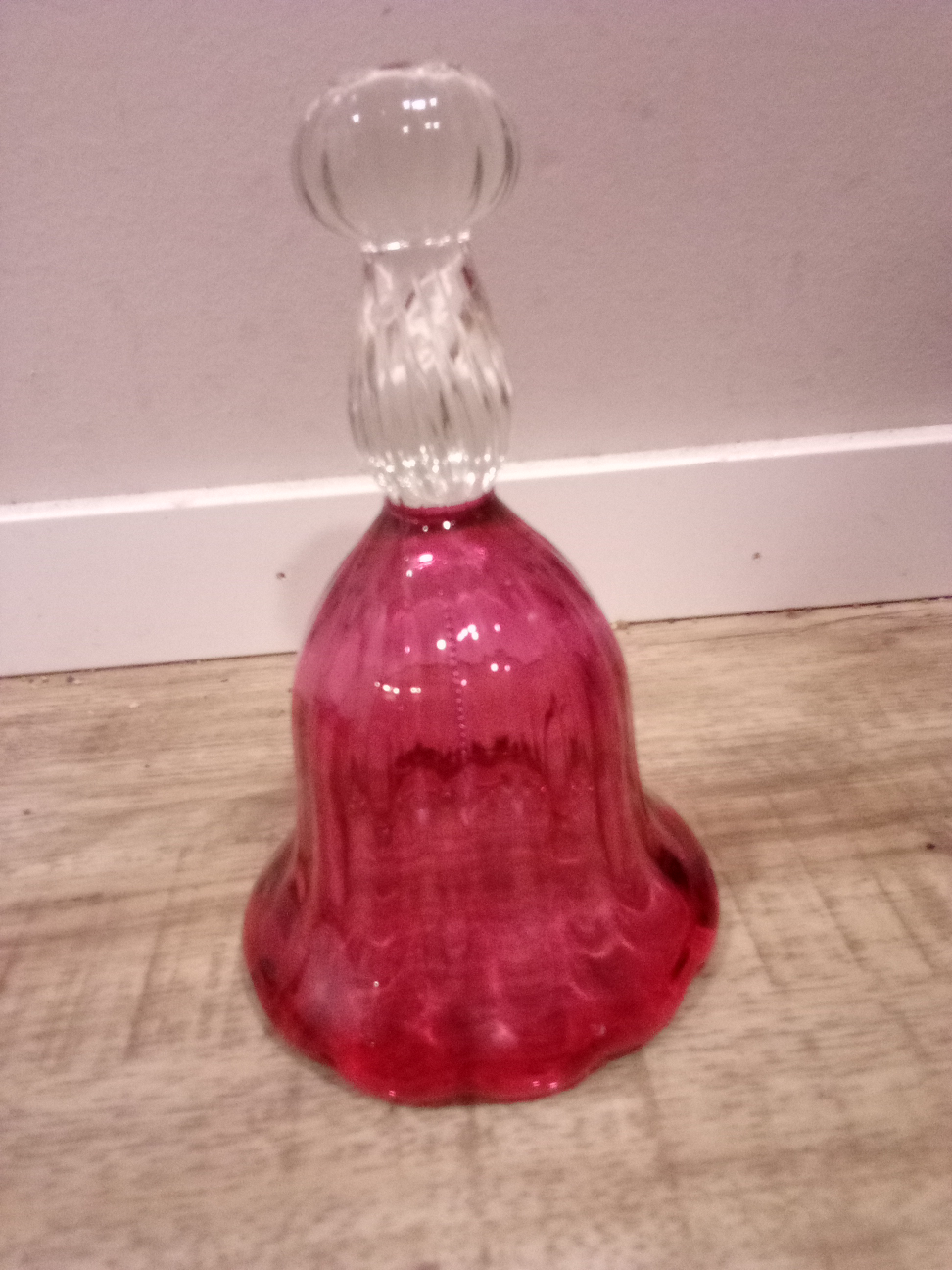 A beautiful Cranberry Glass bell, with little working ball ringer inside. Perfect for adding a touch of elegance to your home decor! The glass is in excellent condition and the colour is vibrant. No scratches or chips.
