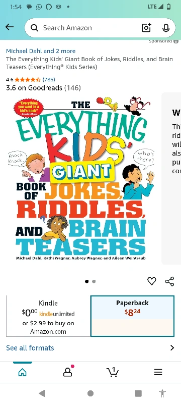 Selling "The Everything Kids' Giant Book of Jokes, Riddles, and Brain Teasers" by Michael Dahl, Kathi Wagner, Aubrey Wagner, and Aileen Weintraub. It's filled with head-scratching brain teasers, punny knock-knock jokes, hysterical puzzles, and ridiculous riddles for kids