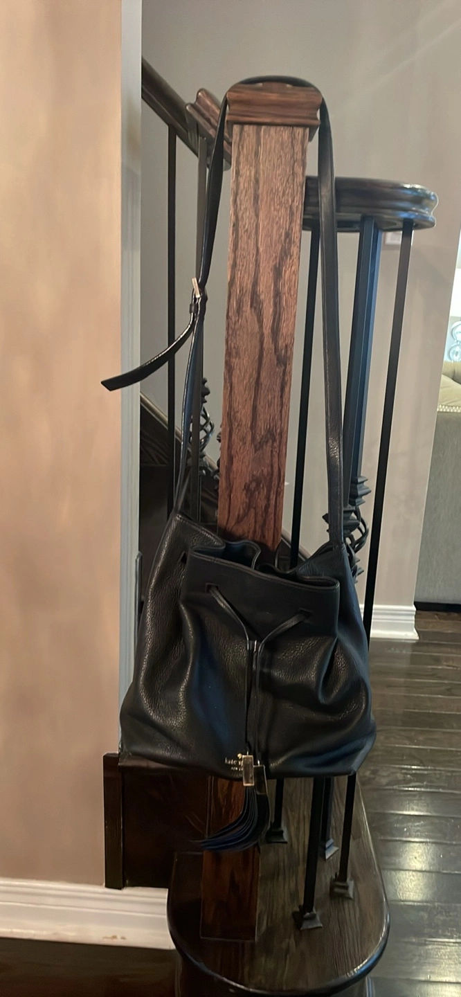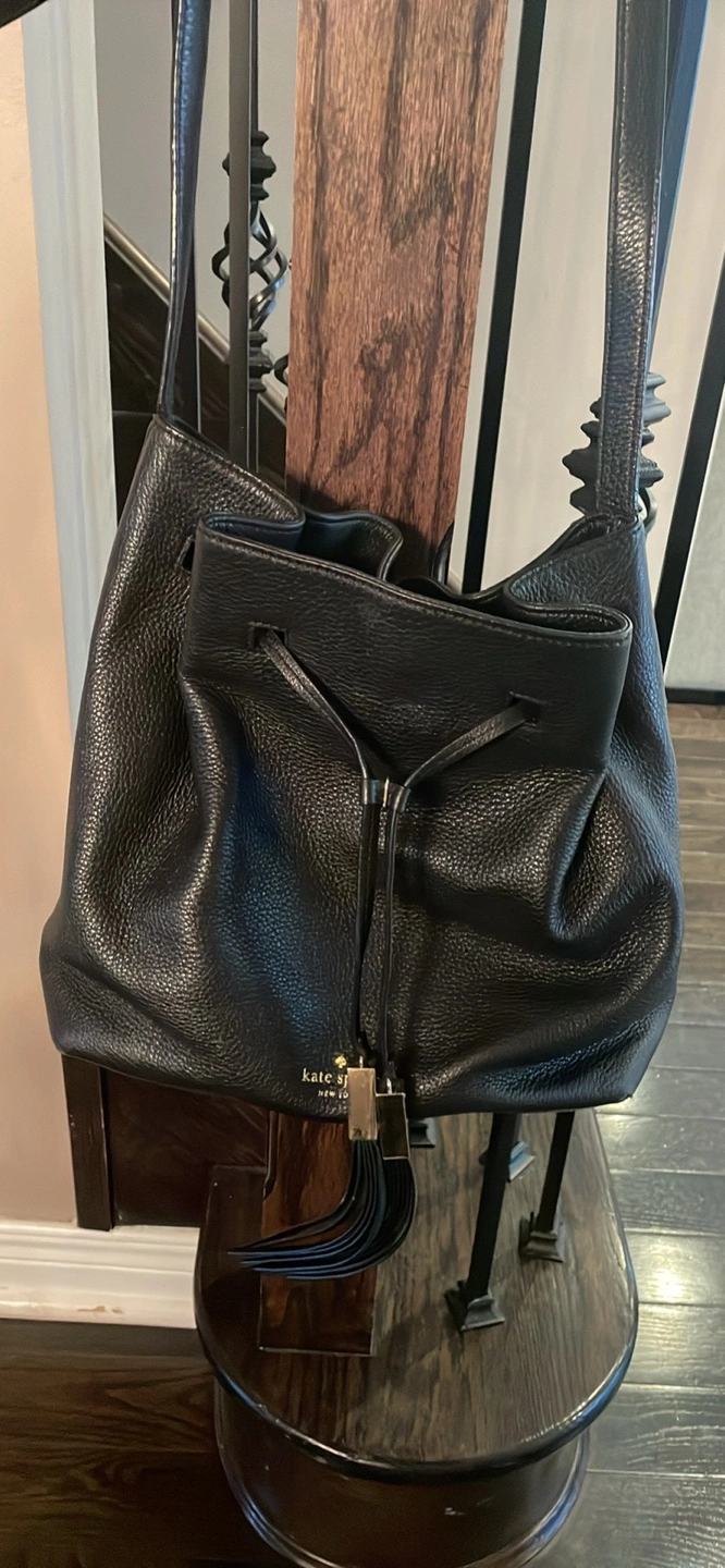 Selling a Kate Spade bucket bag in black leather! It's in great condition and ready for a new home. Perfect for everyday use or a night out