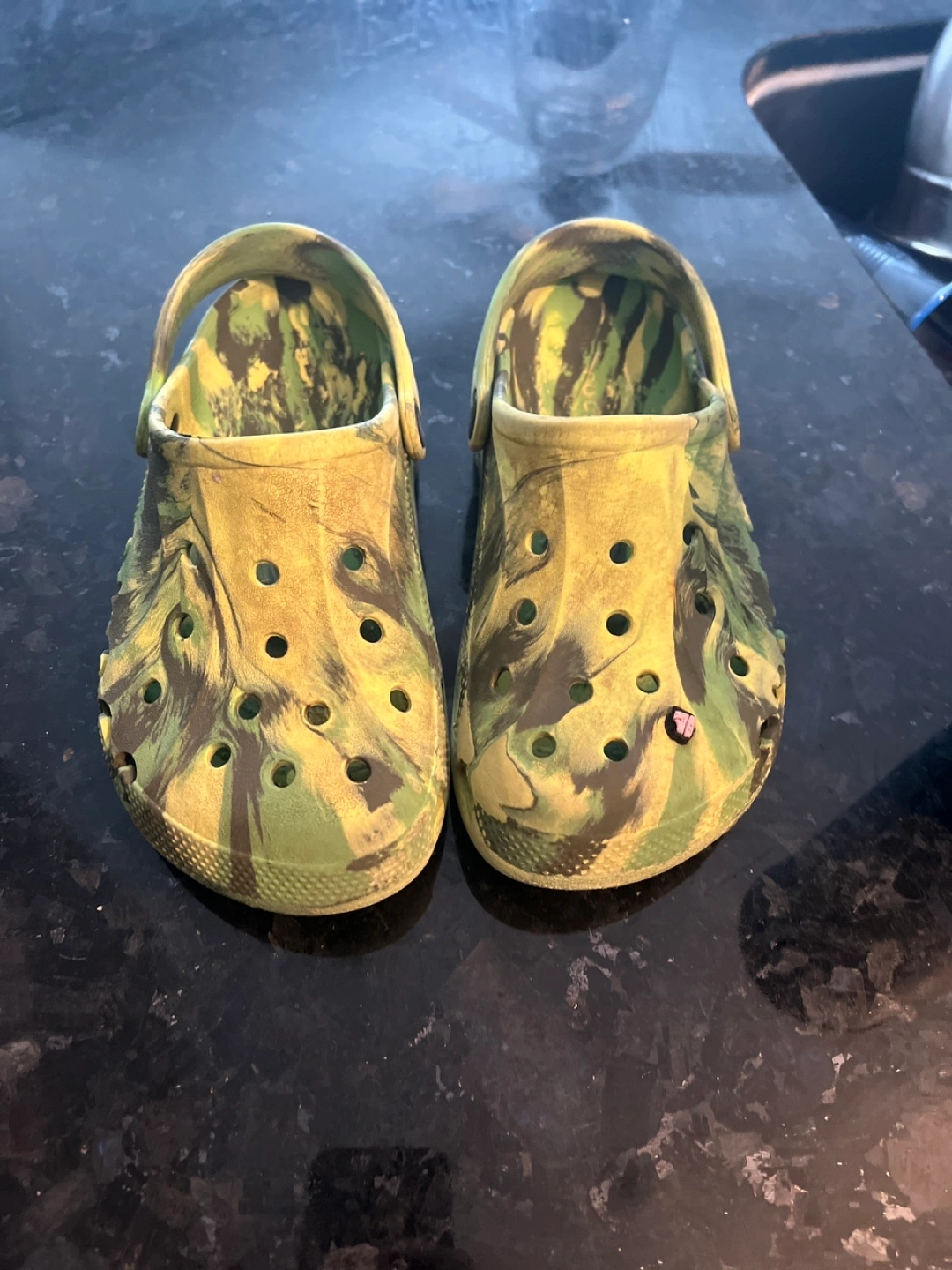 10Selling a pair of Crocs Classic Clogs in a cool camo pattern! They're a size j3
