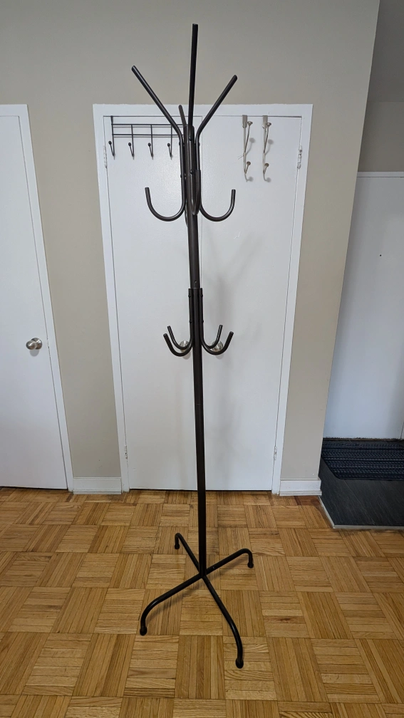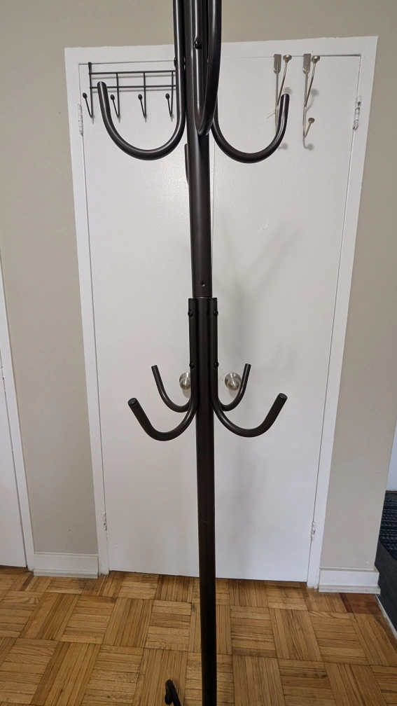 64Coat rack for sale Total 16 hooks for coats, used clothes, bags etc. Easy to disassemble In perfect condition Moving sale DM for details