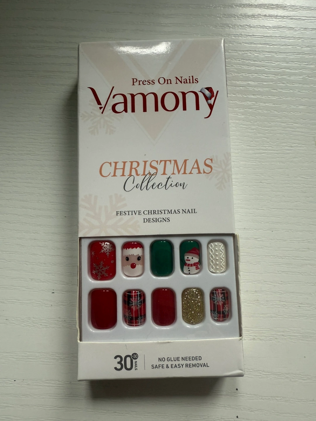 🎄QUALITY MATERIAL: Made of ABS material, Vamony press on nail kit is non-toxic, tasteless, not easy to break, and will not harm the human body or nails, and can be used with confidence. Super slim deign more comfortable to wear with silky smooth rim.