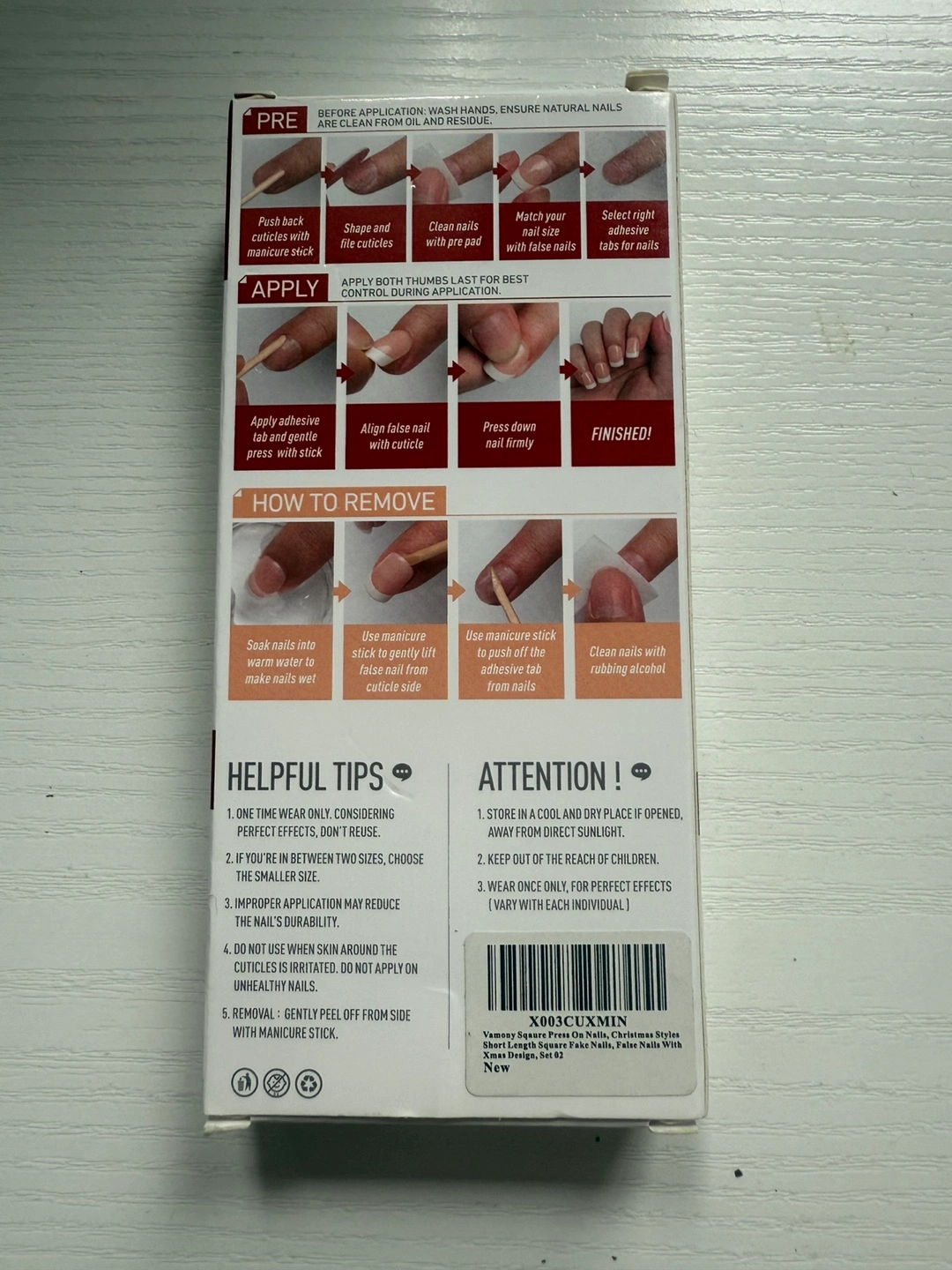 🎄HOLIDAY PRESS ON NAILS ARE HERE: Vamony press ons kit includes 60 square short fake nails (reusable), pre pad, adhesive tabs, manicure stick and mini file. No need to buy other things, you can get the nail salon-like effect.