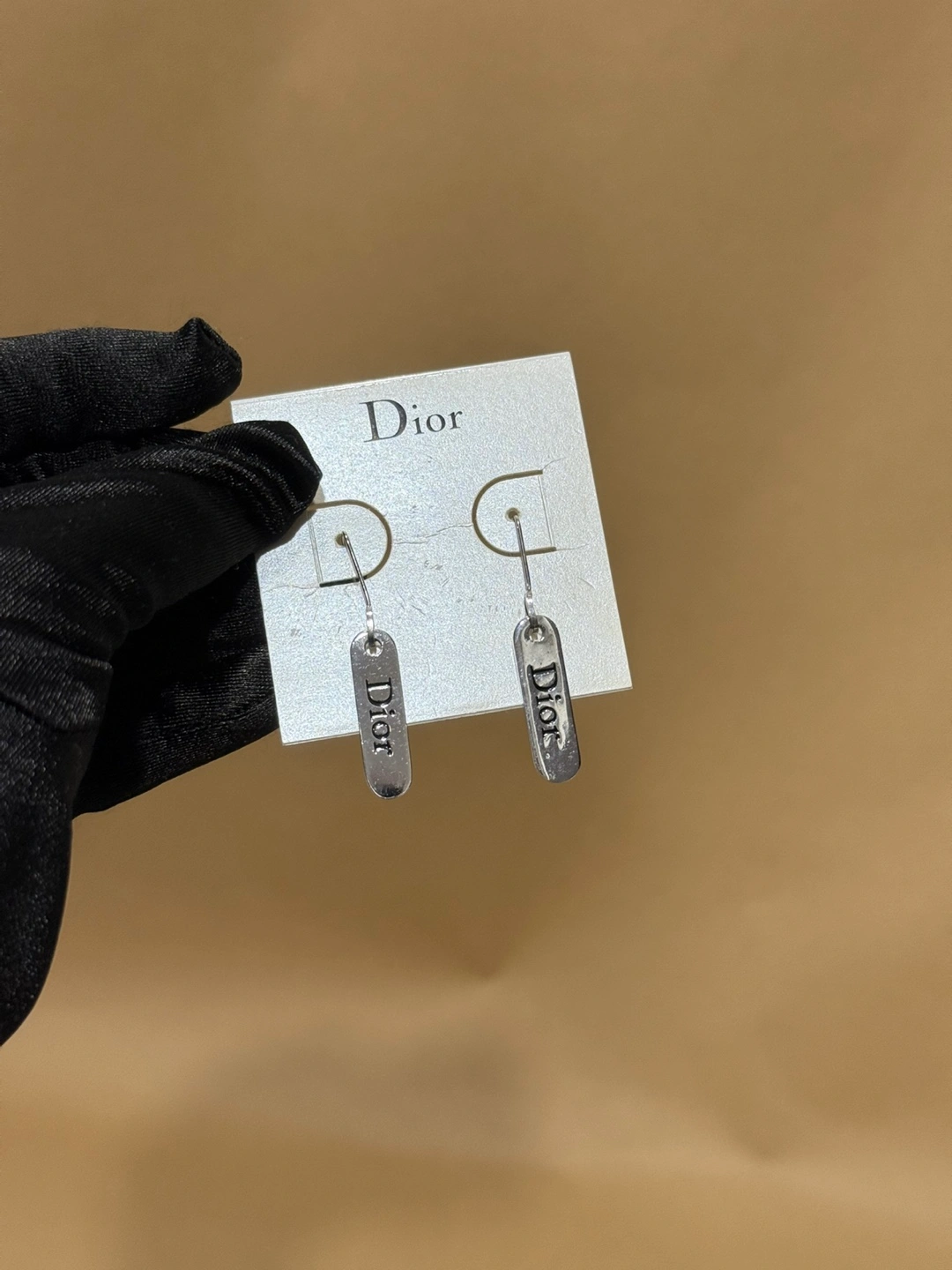 Selling a pair of Dior drop earrings. They are silver in colour and feature the Dior logo. Perfect for adding a touch of elegance to any outfit