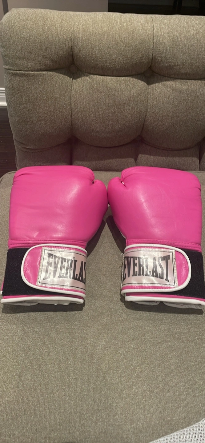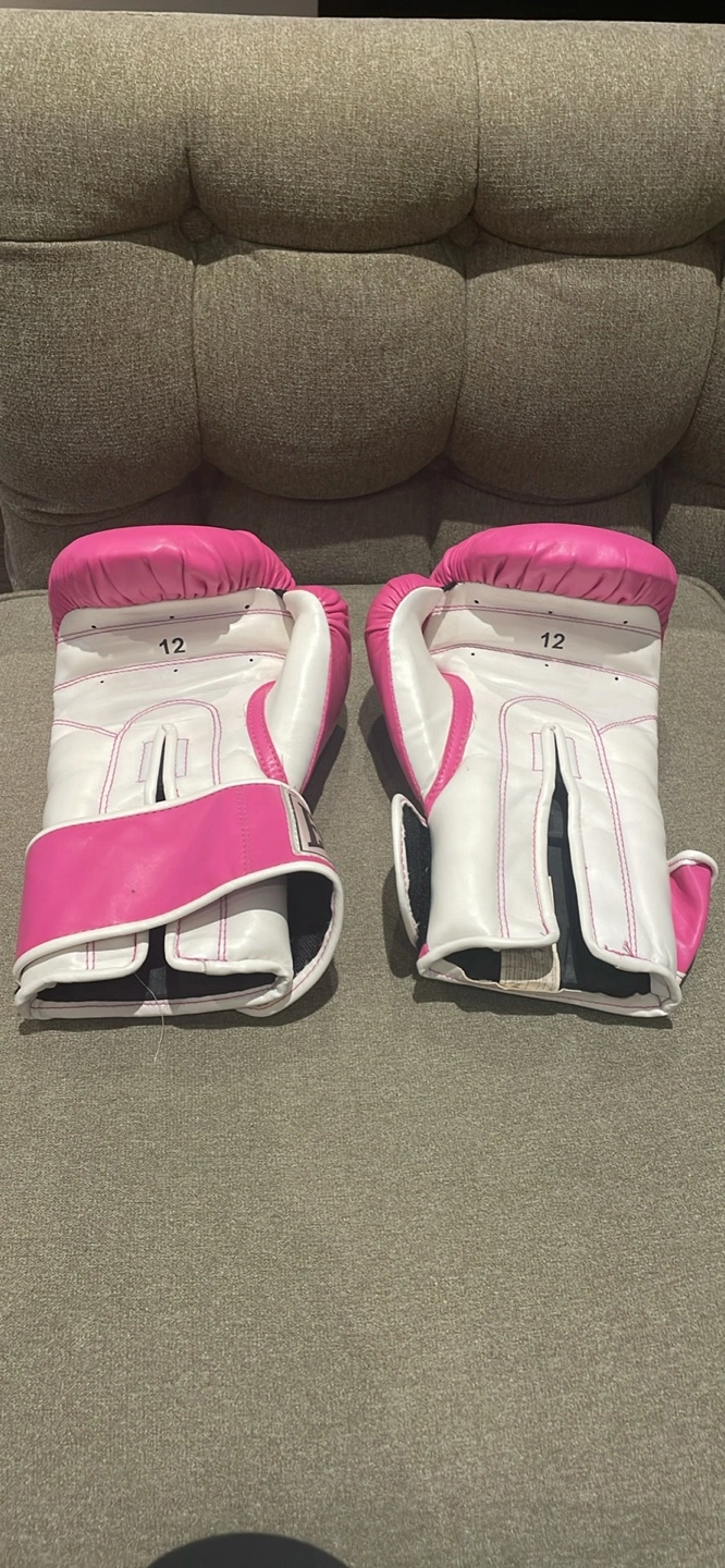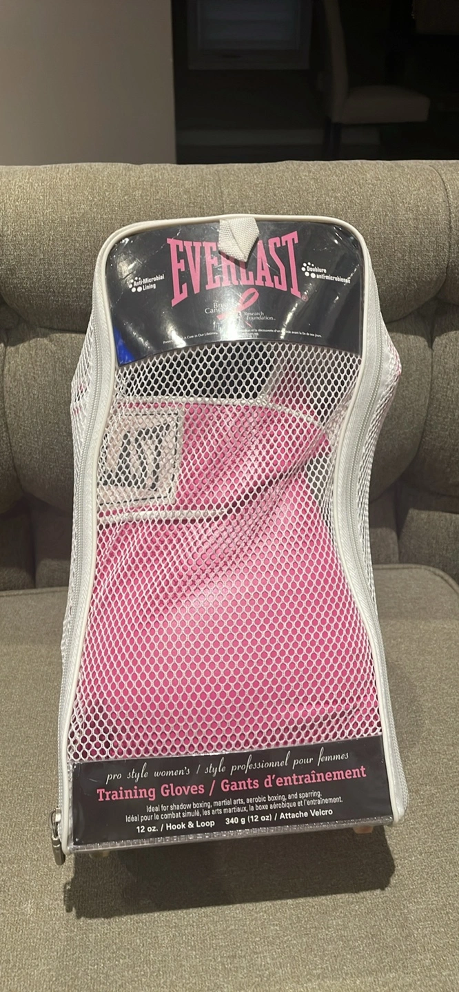 Selling a pair of Everlast Pro Style Women's training gloves in pink! These are 12oz gloves, perfect for boxing, martial arts, aerobic boxing, and sparring. They come in their original packaging bag, ready for a new owner!