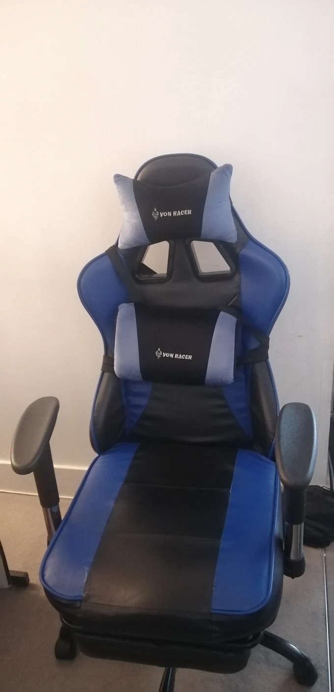 Looking to sell my Von Racer gaming chair in blue and black. It's in great shape and ready for a new home. Perfect for long gaming sessions or working from home!