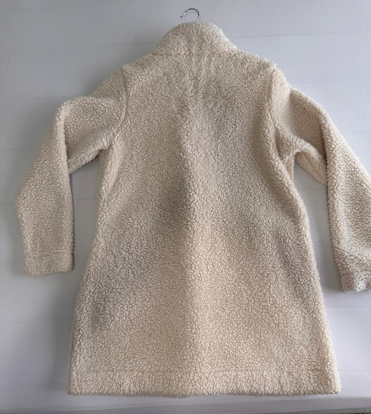 Cozy up with this cream-coloured fleece jacket from Columbia! It's super soft and perfect for those chilly days. The jacket features a high neck and snap closures. It's in great condition and ready for a new home!