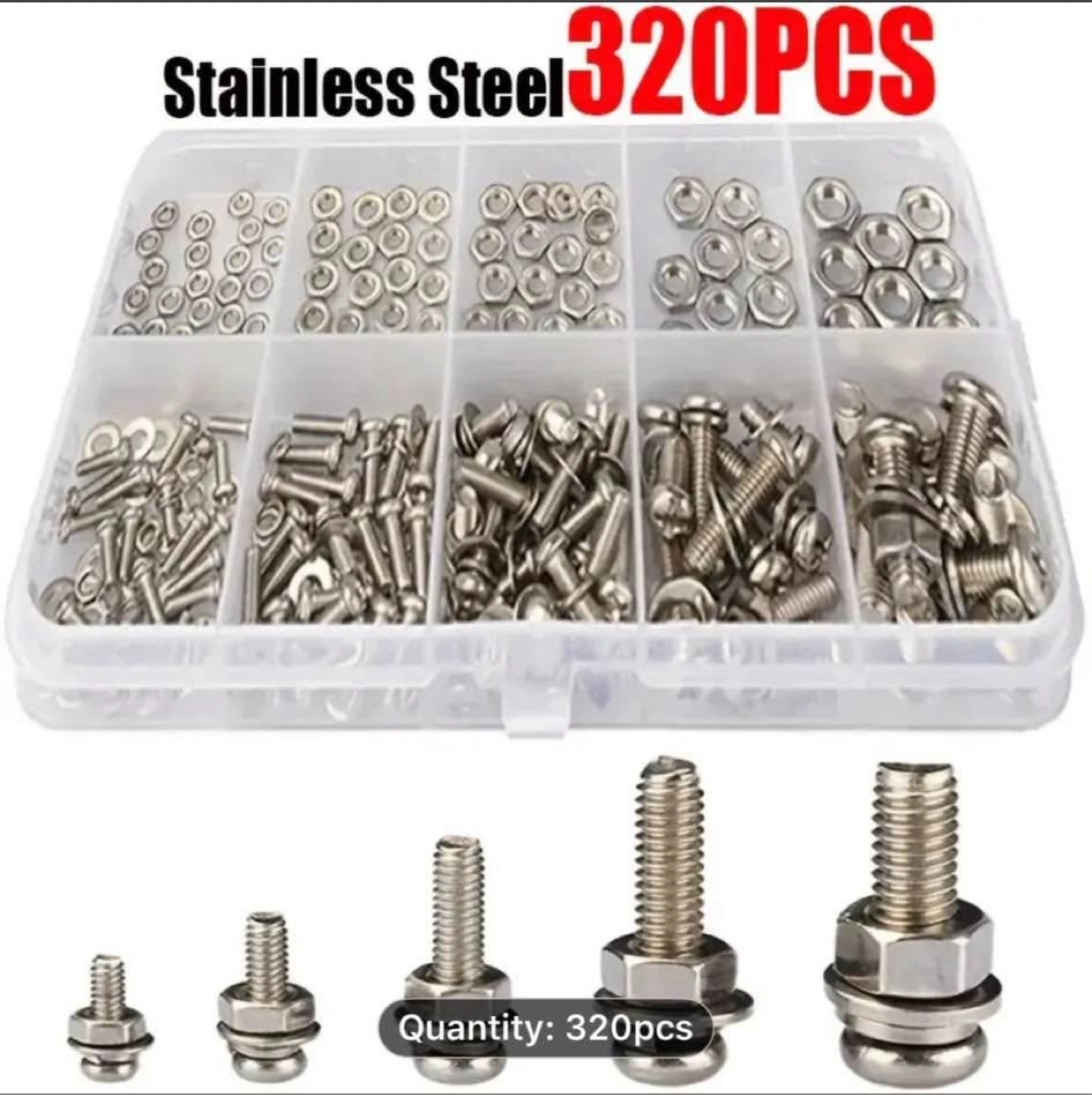Set of 320pcs stainless steel hex nuts and bolt sets, M2-M5 screws, metic nuts, metal fasteners for