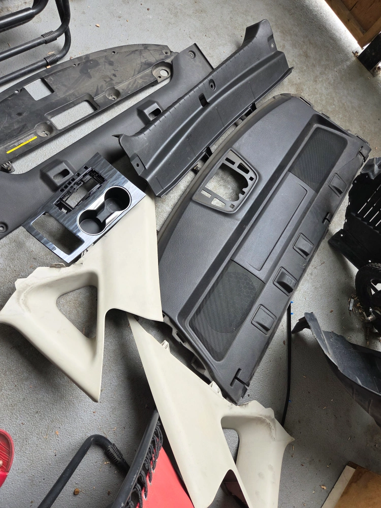 Selling various interior parts from a Nissan car. Parts include trim pieces, panels, and possibly an air filter box. Condition varies, please see photos for details!