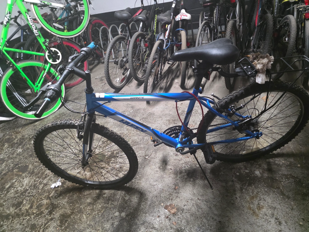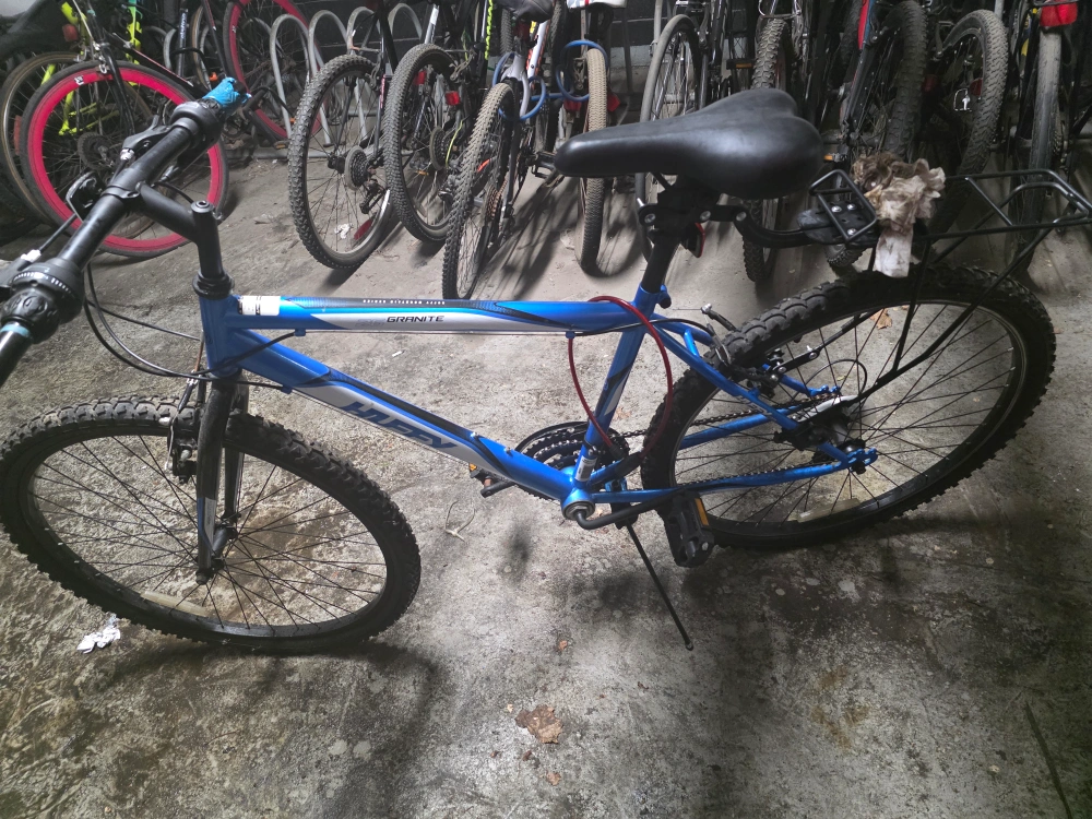 Selling a Huffy Granite mountain bike in blue. It's a sturdy bike, perfect for getting around town or hitting some trails. Ready for a new home!