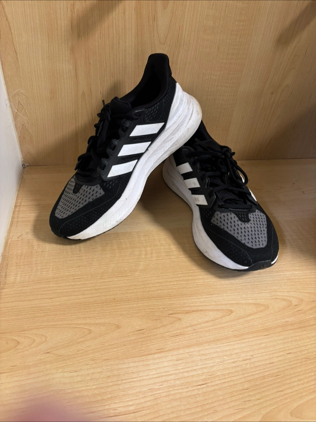 Adidas running shoes in black and white. They show some signs of stains on the soles can be washed , but the uppers are in good condition.