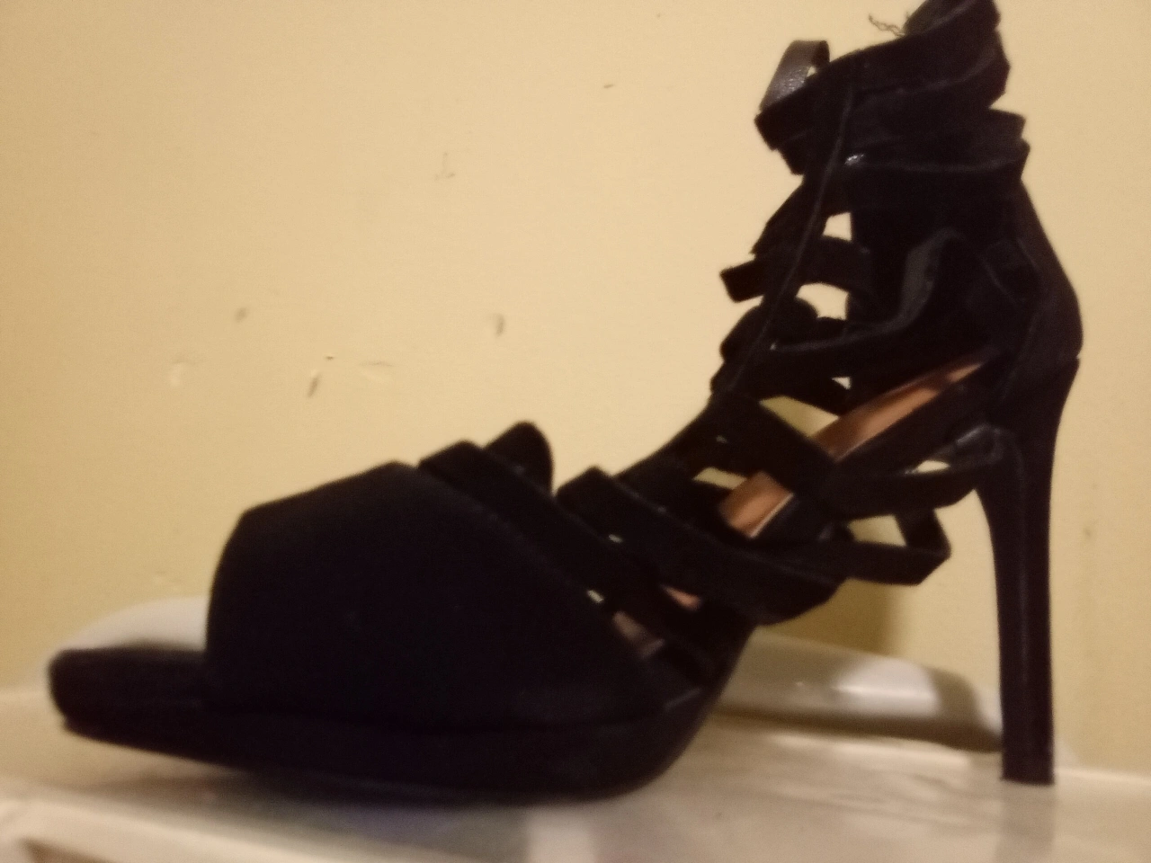29I'm selling a pair of black strappy heels. They're in great condition and ready for a night out. They feature a stylish design with multiple straps and a high heel for a chic look