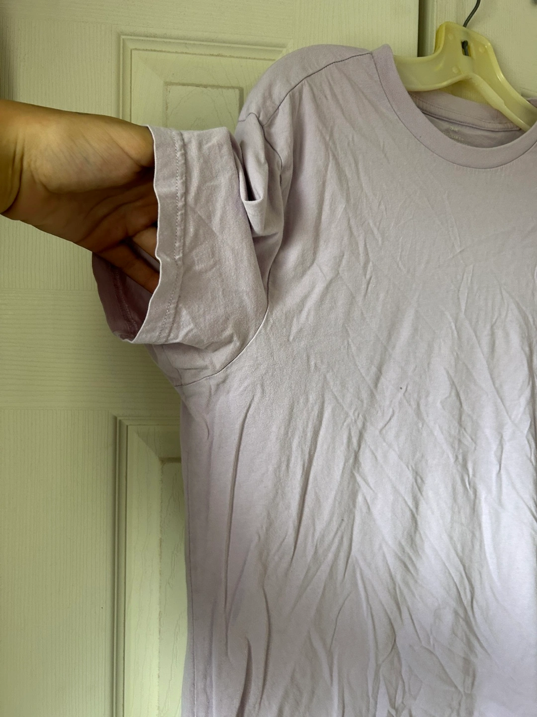 Selling a cute H&M T-shirt in a lovely lavender colour. It's a size small and made of a soft material. Perfect for everyday wear!