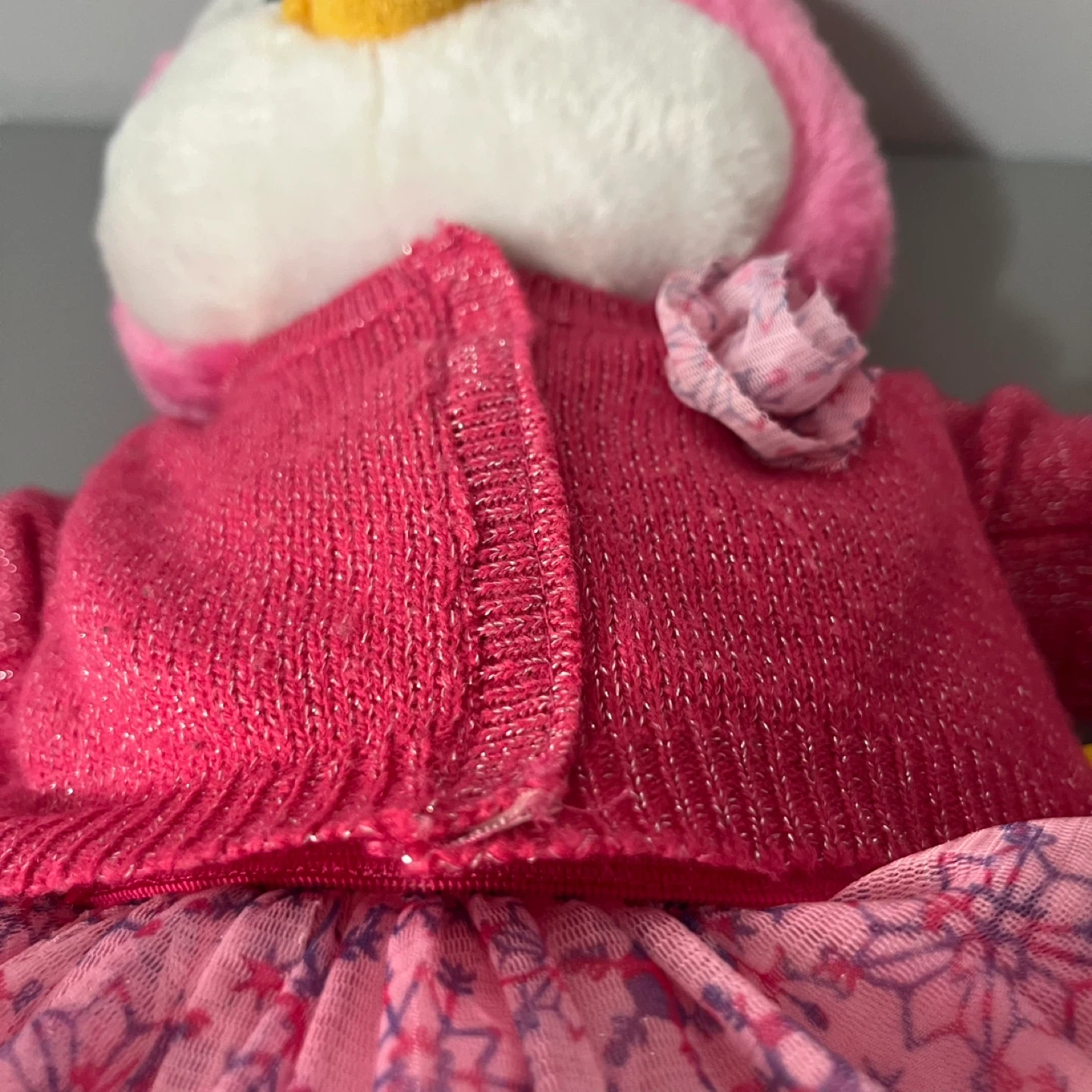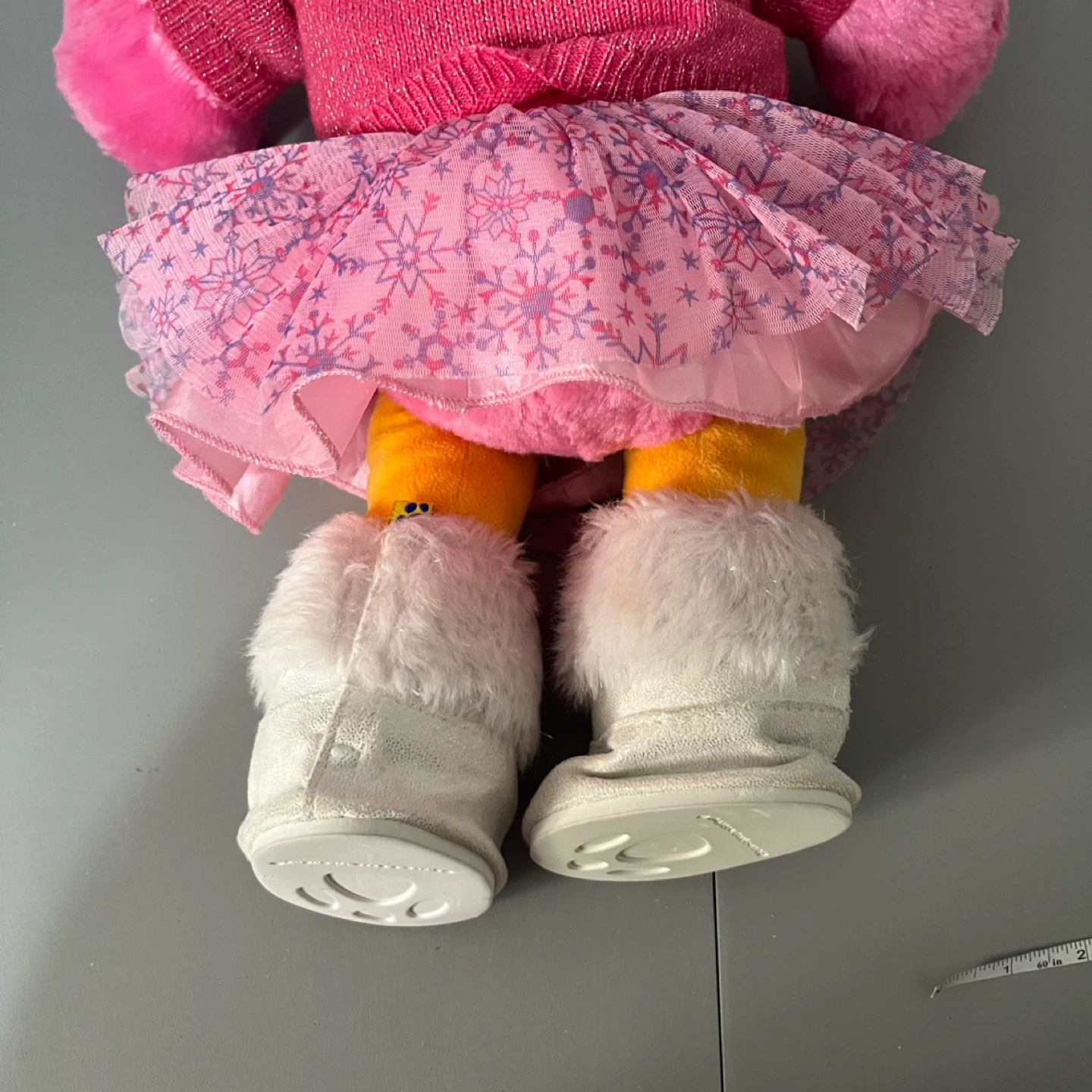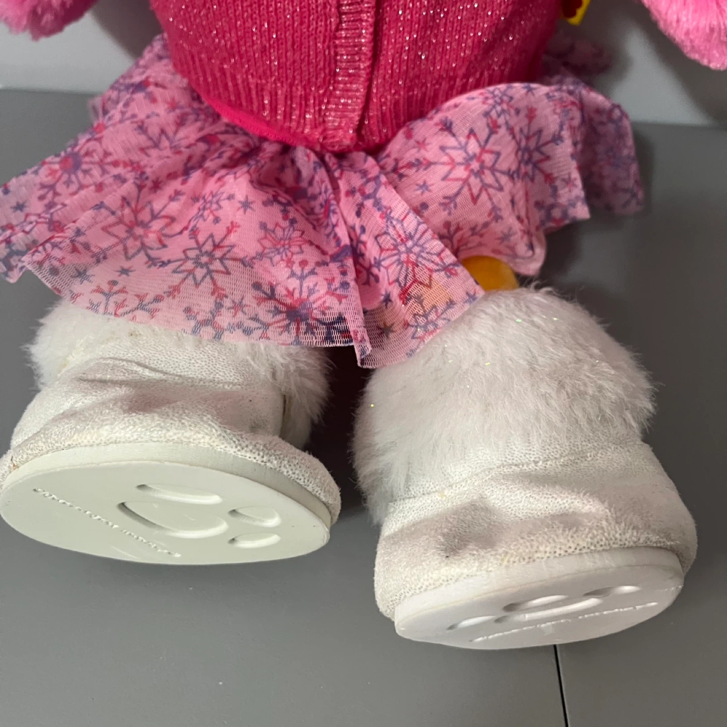 Selling a cute Build-A-Bear pink penguin plush! This adorable stuffed animal comes with a pink sweater, snowflake skirt, and white furry boots. Perfect for kids or collectors!