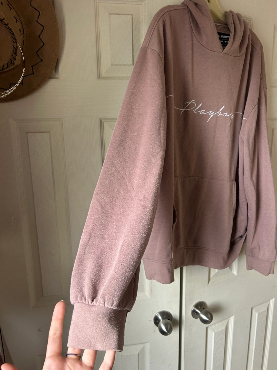 Selling a pre-loved Playboy hoodie in size XXL. It's a comfortable and stylish piece to add to your wardrobe. The hoodie features the classic Playboy logo. Perfect for casual wear!