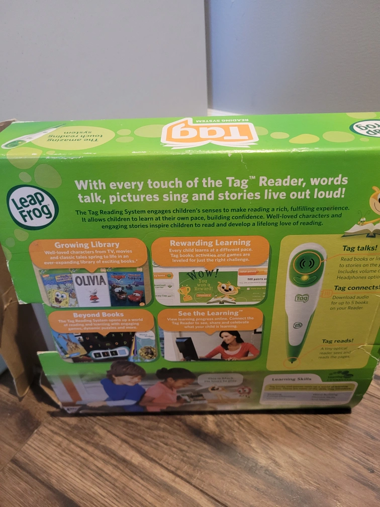 Selling new LeapFrog Tag Reading System! It's designed for kids aged 4-8. Comes with the box and all included components like the LeapPad Explorer CDs and headphones. Help your little one learn to love reading with this amazing touch reading system There's 2 different boxes in the pictures each im selling for $25